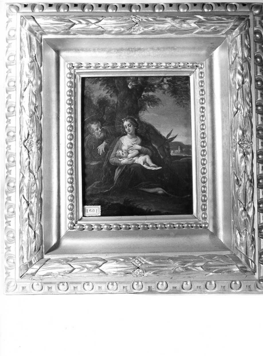 - NOTIZIE STORICO CRITICHE Il piccolo dipinto è di scarsa qualità artistica. Si riscontra una disposizione molto comune delle figure, dell'asino e dello sfondo paesistico. La stesura pittorica è alquanto rozza e sommaria, anche se una pulitura dell'opera potrebbe mostrare un originale di un livello superiore. Appartiene, probabilmente, alla scuola romana, sicuramente dopo il Maratta e verso la prima metà del Settecento