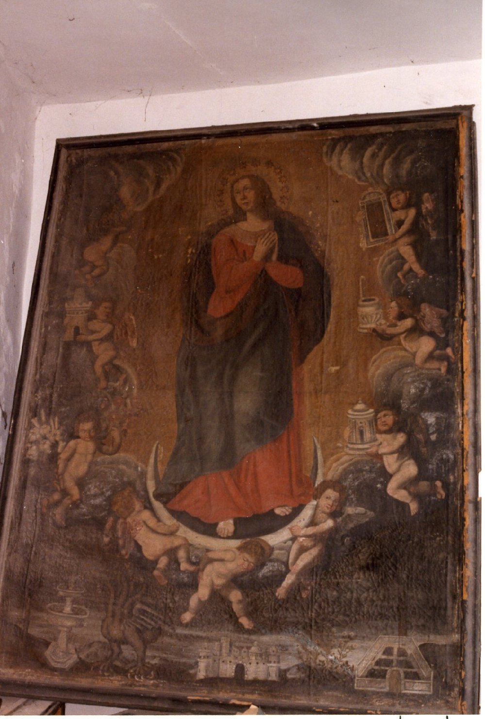 Personaggi: Madonna Immacolata. Attributi: (Madonna Immacolata) falce di luna; torre davidica; specchio; orto concluso; specchio. Figure: angeli