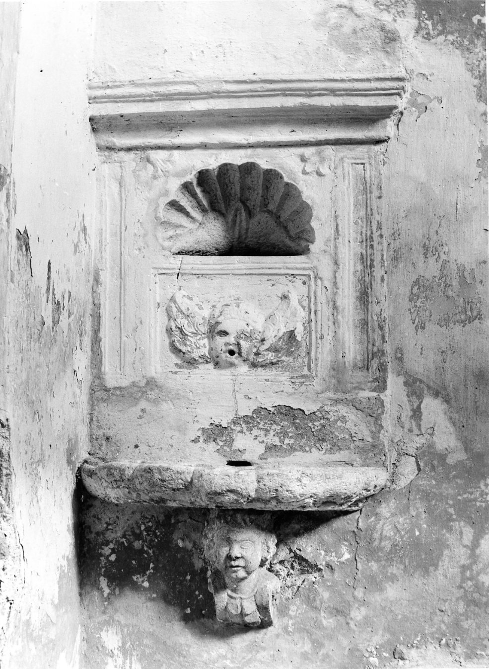 - NOTIZIE STORICO CRITICHE Per la presenza delle protomi cherubiche e per la tipologia generale del lavabo, si propone una datazione al XVIII secolo, confermata dalla notizia della nuova consacrazione subita dalla chiesa nel 1705
