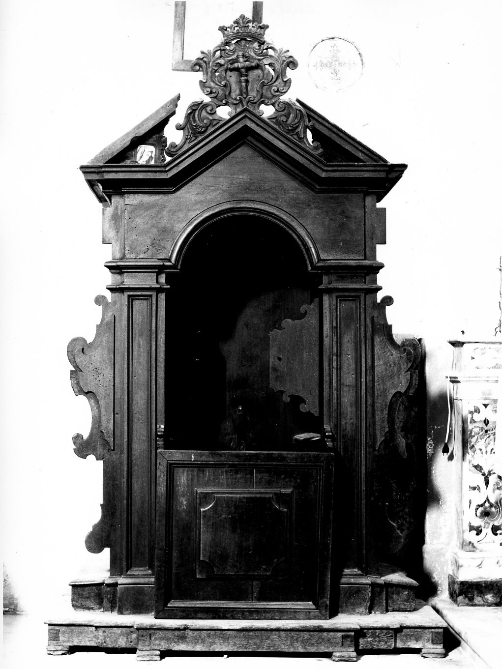 - NOTIZIE STORICO CRITICHE Lavoro di bottega locale databile al pieno secolo XVIII a giudicare dall'impianto architettonico e dai partiti decorativi. La presenza di due confessionali simili conservati nella chiesa Parrocchiale di S. Maria Assunta fa ipotizzare la medesima provenienza