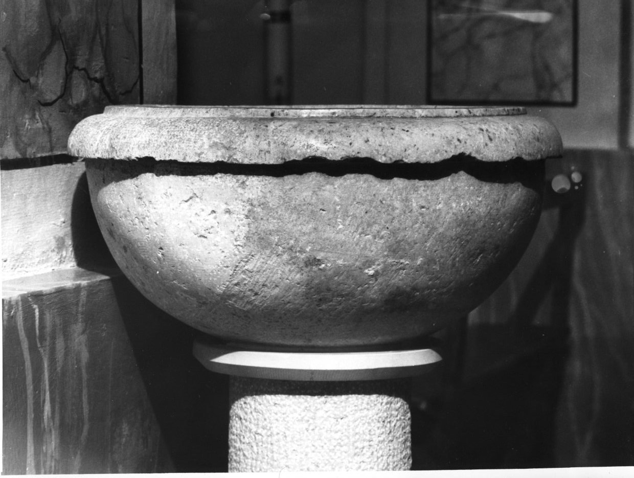 - NOTIZIE STORICO CRITICHE L'assenza di partiti decorativi nella conca semisferica rende difficile la datazione dell'opera. L'orlo superiore sembra derivare dalla tipologia cinquecentesca, ma in mancanza di dati precisi si propende per una cronologia protratta al XIX secolo
