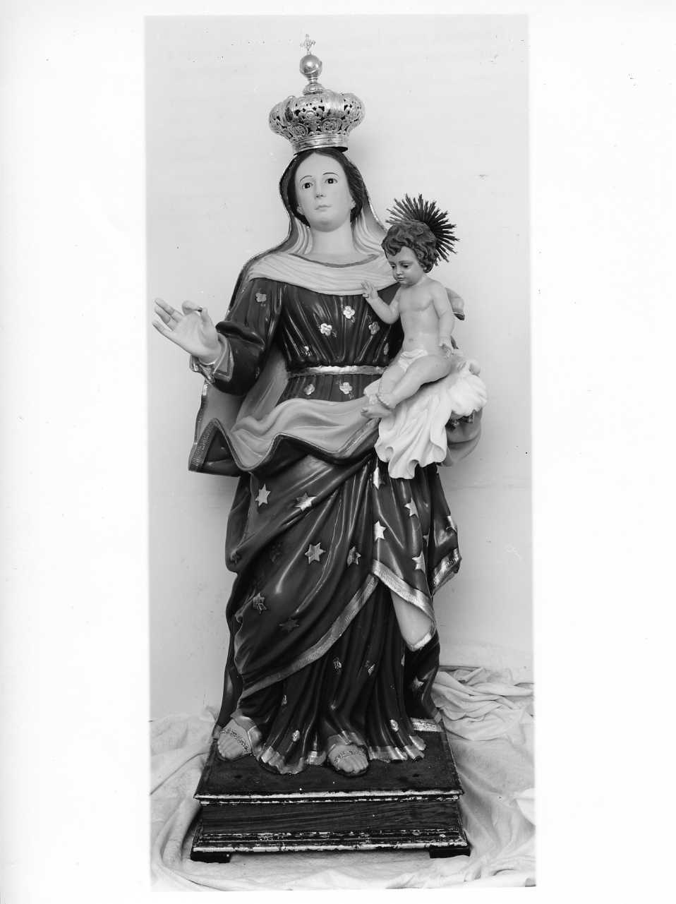 - NOTIZIE STORICO CRITICHE La statua, ascrivibile agli anni a cavallo fra XVIII e XIX secolo, sembra riproporre le forme composte ma ariose di gusto rococò usate da Di Zinno e largamente diffuse nella regione. Il movimento della figura sapientemente dosato, la grazia delle mani e del Bambino indicano la presenza di un artista di buon livello qualitativo, anche se l'aspetto della statua risulta fortemente compromesso dalla totale ridipintura delle superfici operata nell'intervento del 1998, come visibile nella documentazione fotografica allegata (ante e post intervento)