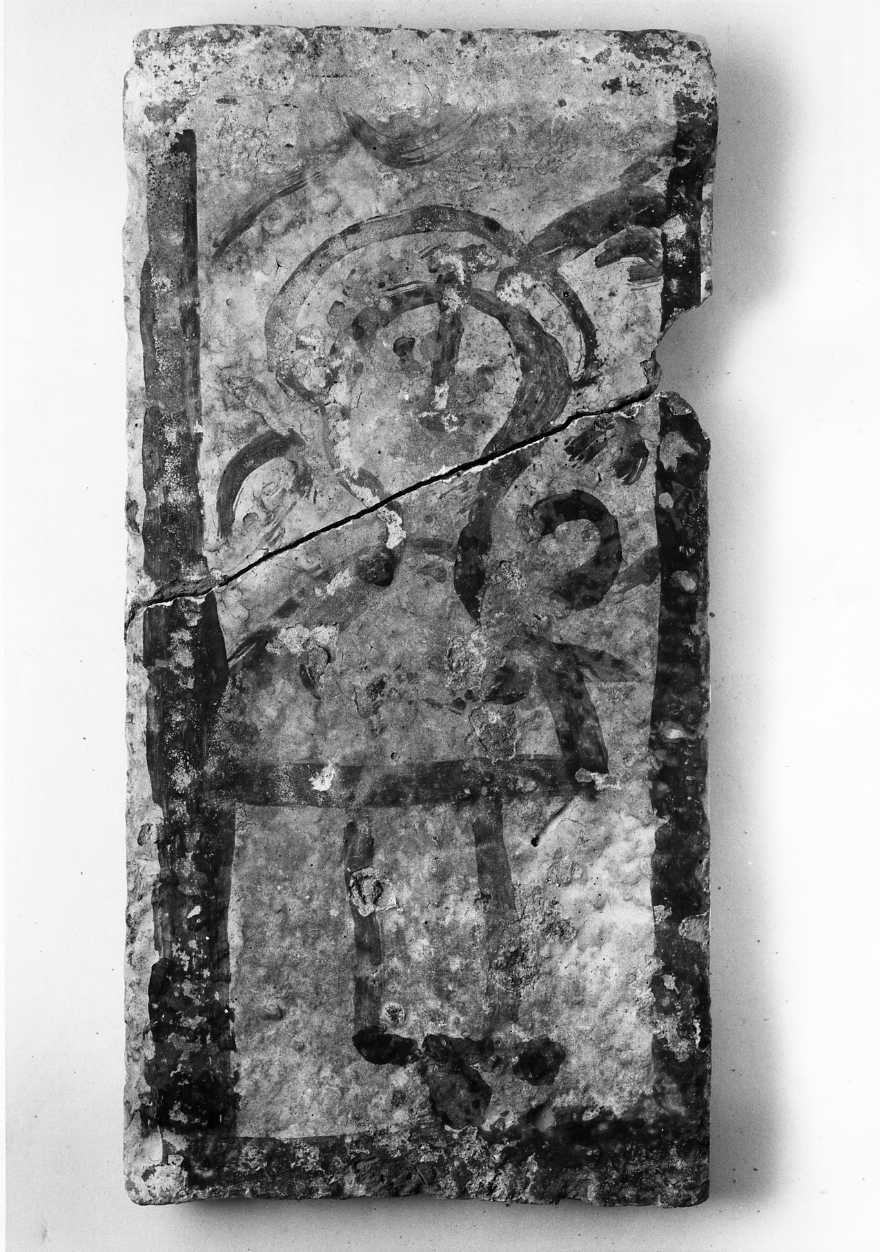 Mattonella dipinta raffigurante un santo