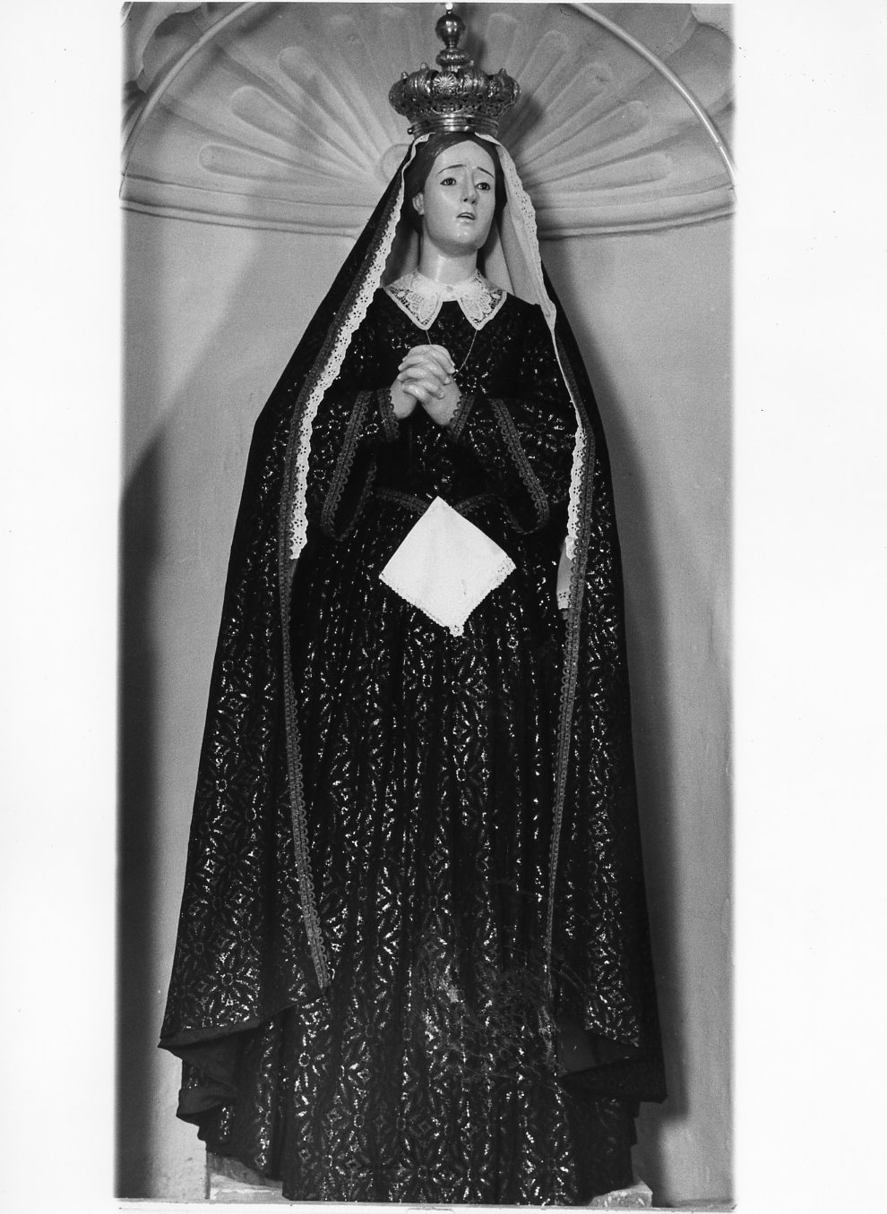 Personaggi: Madonna Addolorata. Attributi: (Madonna Addolorata) fazzoletto. Oggetti: corona