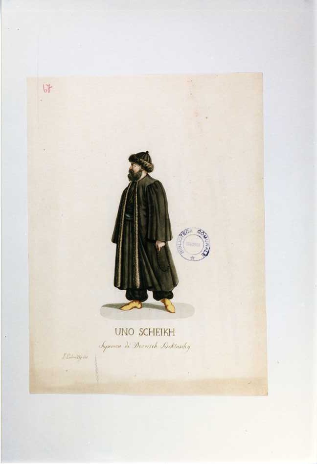 UNO SCHEIKH. SUPERIORE DI DERVISCH BEKTASCHY. COSTUME MUSULMANO