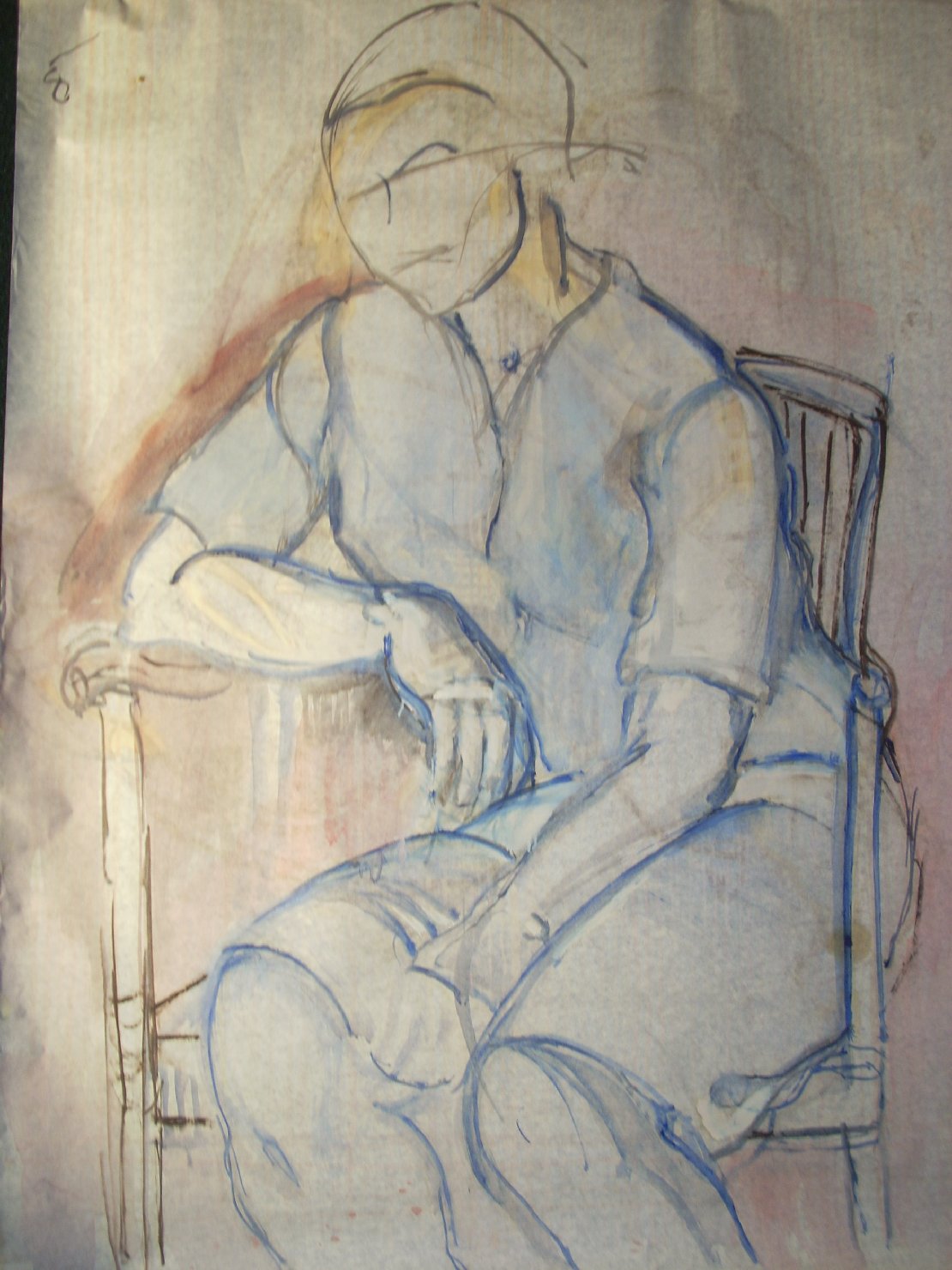 Schizzo in marrone e blu 2. figura femminile seduta