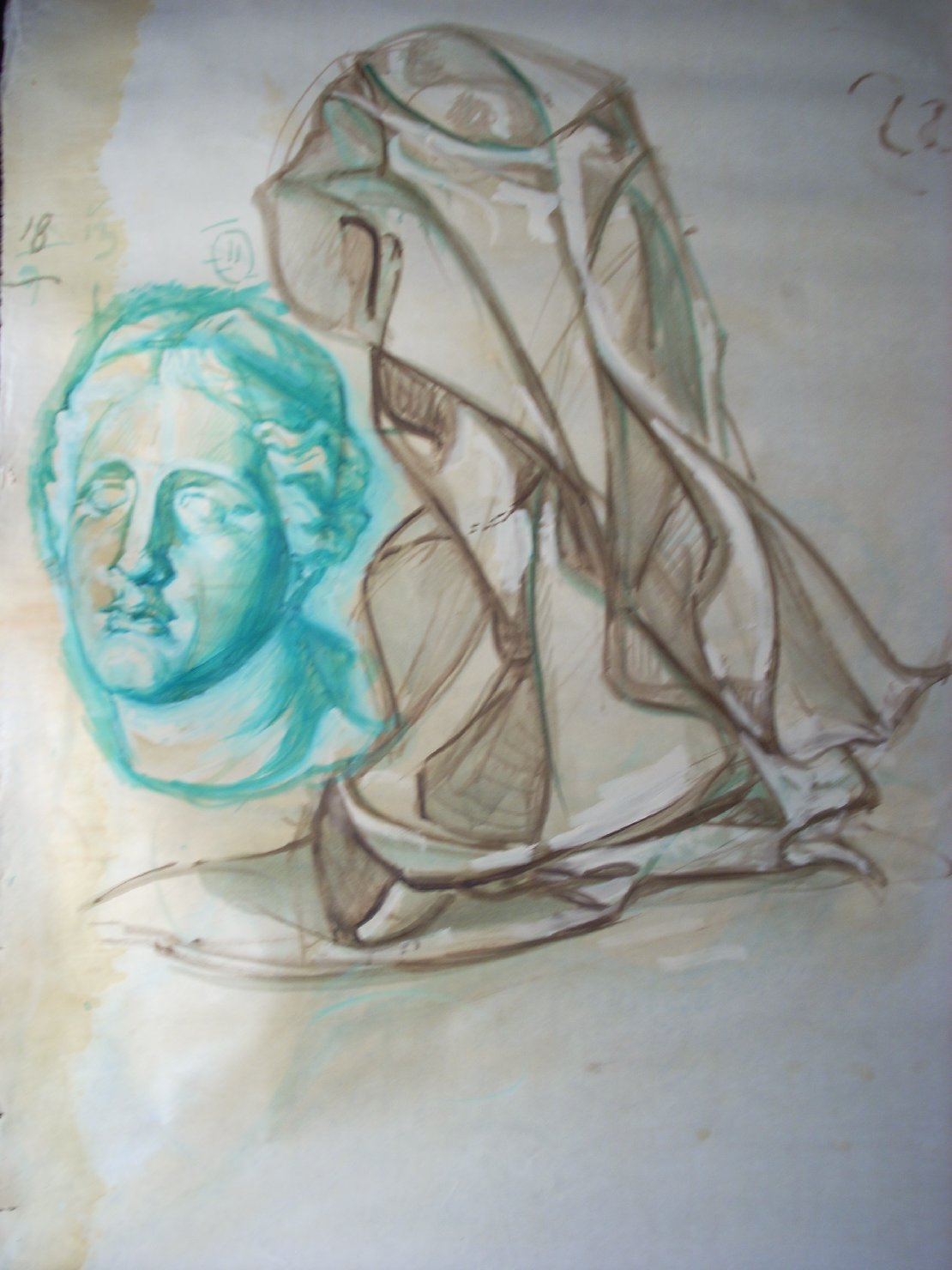 Piega in marrone e testa femminile in verde. testa di donna