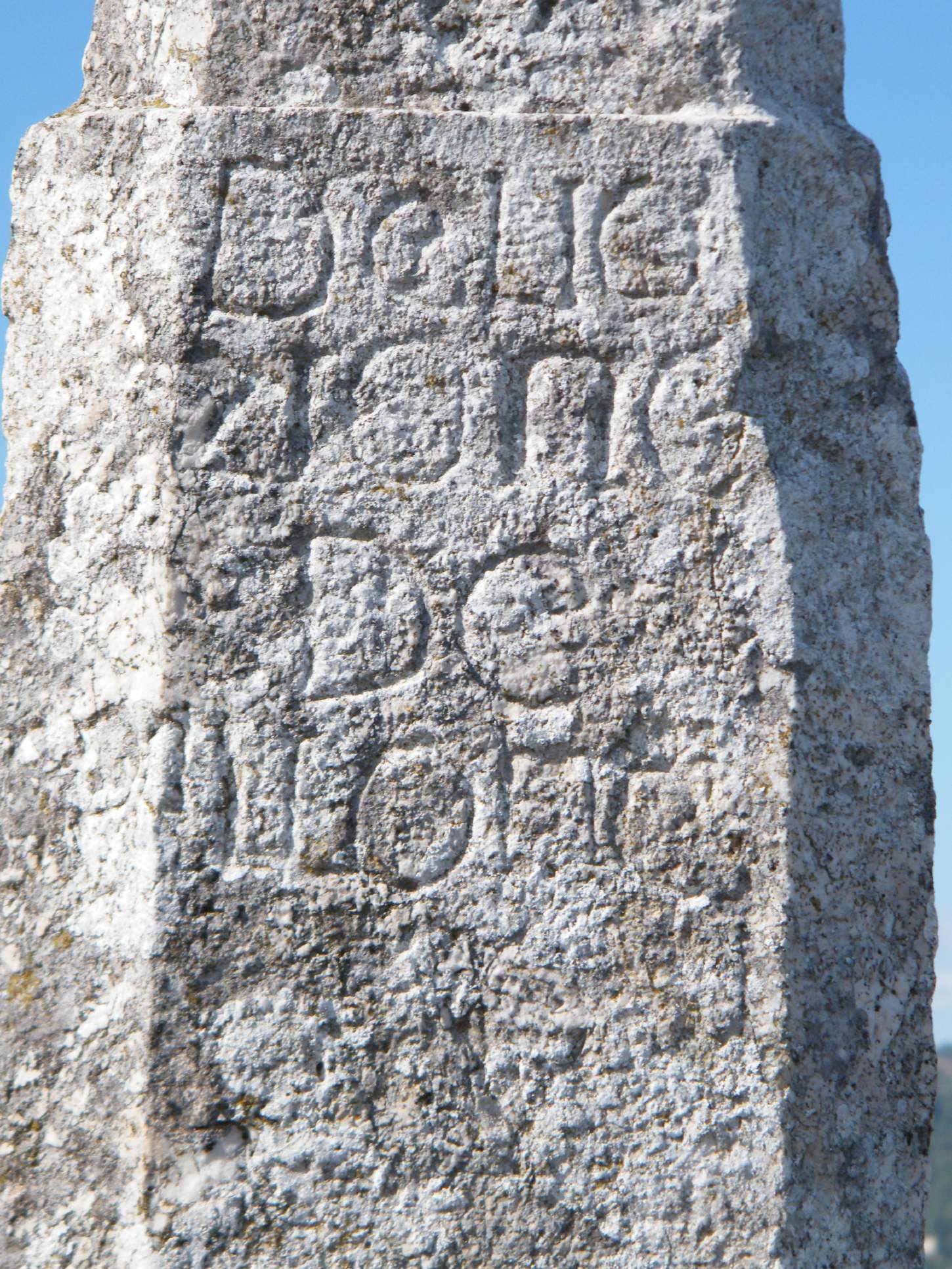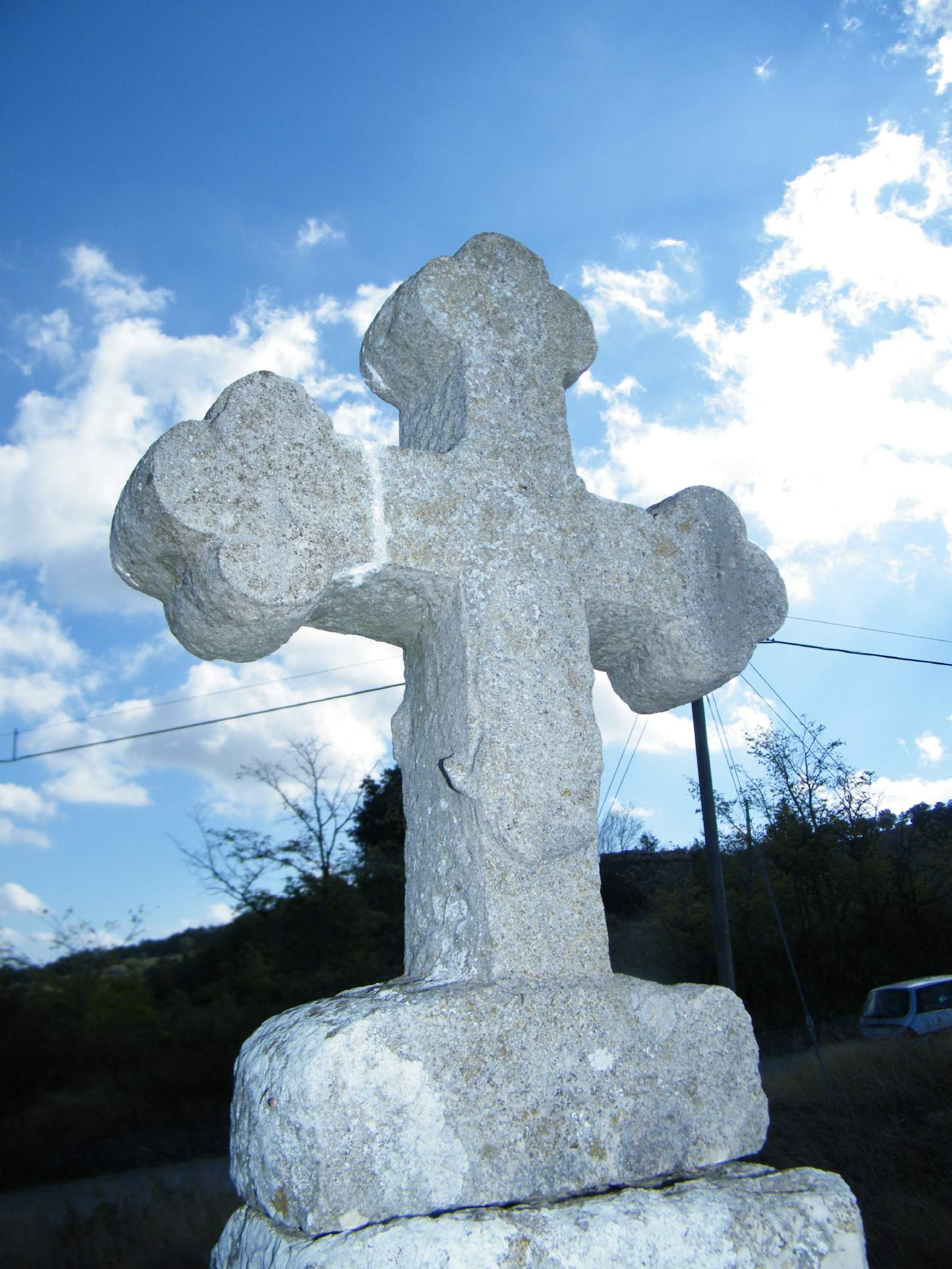 il manufatto è una croce di pietra su una colonna a base quadrata con gli spigoli smussati