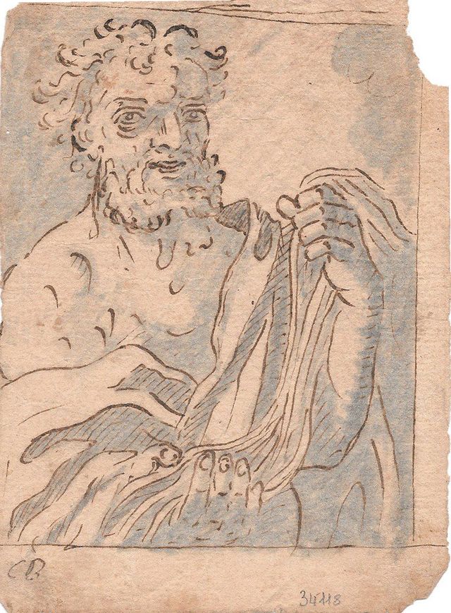 - NOTIZIE STORICO CRITICHE La raccolta, miscellanea di disegni, acquerelli, bozzetti, stampe etc. di vari artisti attivi nei secc. XVII e XVIII, fu recuperata nel 1983 presso le famiglie Iannadrea e Tirabassi, eredi dei Giuliani, Giacomo, padre, e Nicola, figlio, pittori e decoratori di Oratino (CB) operativi in ambito napoletano a cavallo dei secc. XIX-XX. Nicola, allievo di Morelli, la acquisì dagli eredi di Ciriaco Brunetti, pittore e decoratore oratinese attivo in tutto il Molise dalla prima metà del sec. XVIII agli inizi del XIX. Nel 1990 è stata acquistata dal MIBAC e custodita dalla locale Soprintendenza (specifiche dell’atto del 29/10/1990: 375 disegni su fogli singoli; un taccuino di 27 fogli, un taccuino di 21 fogli, un taccuino di 141 fogli, un volume rilegato contenente 54 fogli, 129 incisioni e 24 bozzetti ad olio su tela o cartone). Considerato che su un foglio sono stati realizzati più disegni-bozzetti-schizzi, il fondo è costituito da 700 disegni circa, di cui oltre la metà acquerellati, e da circa 330 stampe, italiane e tedesche, dei secc. XVI-XVIII. La collezione è composta da: disegni raccolti in n. 4 taccuini di Ciriaco Brunetti o Benedetto Brunetti, di varie dimensioni (n. 1 con figure di Santi e n. 3 con progetti per decorazioni); un album rilegato in pelle nel quale sono stati originariamente incollati circa 200 disegni di mani diverse (riportati a singoli foglio dopo il restauro). Vi sono inoltre: circa n. 200 studi per decorazioni in larga parte siglati o firmati da Ciriaco Brunetti; un gruppo di circa n. 70 accademie di nudo riconducibili alla bottega di Francesco Solimena; un gruppo di circa n. 30 disegni a soggetto sacro di Niccolò Falocco, pittore oratinese zio di Brunetti, allievo di Solimena, operativo a Napoli; n. 40 fogli di autori vari di ambito napoletano dei secc. XVI-XVIII (Balducci, Corenzio, Giaquinto etc.). L’importanza del fondo è data dalla sua unitarietà trattandosi di materiale di uso quotidiano, giunto quasi integro fino a noi, di un pittore gravitante in ambito provinciale, la cui produzione superstite è purtroppo oggi riconducibile solo ad una serie di dipinti, conservati in chiese molisane. Testimonia, inoltre, non solo la quotidiana, costante attività del Brunetti nell’ambito dei soggetti decorativi, ma anche l’operosa attività di una bottega oratinese in cui praticavano più esponenti dello stesso ambito familiare (Pietro, Beniamino, Benedetto e Stanislao Brunetti). Le opere, restaurate per oltre il 50% in tre fasi, dal 1992 al 1995 dai restauratori C. L. B. Borruso e P. Crisostomi, sono state custodite presso i depositi della Soprintendenza fino al 2015 anno di definitiva collocazione presso Castello Pandone di Venafro, dove, a rotazione, fanno parte dell’esposizione permanente del Museo. Il disegno è siglato in basso a sinistra da Ciriaco Brunetti e presenta una incorniciatura che potrebbe indicare l’intenzione di inserirlo in una riquadratura o essere un abbozzo di un dipinto ad olio. Il tratto sommario delle linee del disegno è arricchito dall’acquerellatura, che da volume al volto e alle pieghe del manto, che il santo ha tra le mani