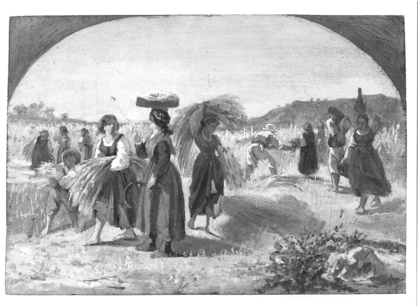 Vi è raffigurato un gruppo di donne intente a raccolgiere le spighe il frumento per il campo. La tela ha una cornice dorata