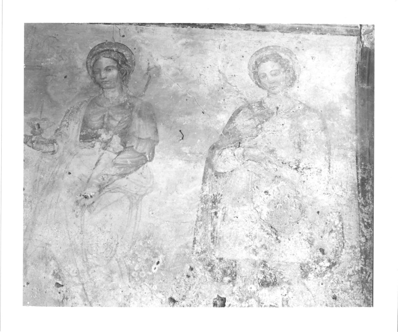 - NOTIZIE STORICO CRITICHE Il dipinto potrebbe essere opera di un aiuto del Maestro del polittico di Angri, a cui potrebbero essere riferite le più importanti parti del ciclo della cappella. I Santi sono rappresentati insieme ad un Santo Vescovo. Il pessimo stato di conservazione impedisce una chiara identificazione del Santo sulla destra, che sembra portare una palma nella mano destra