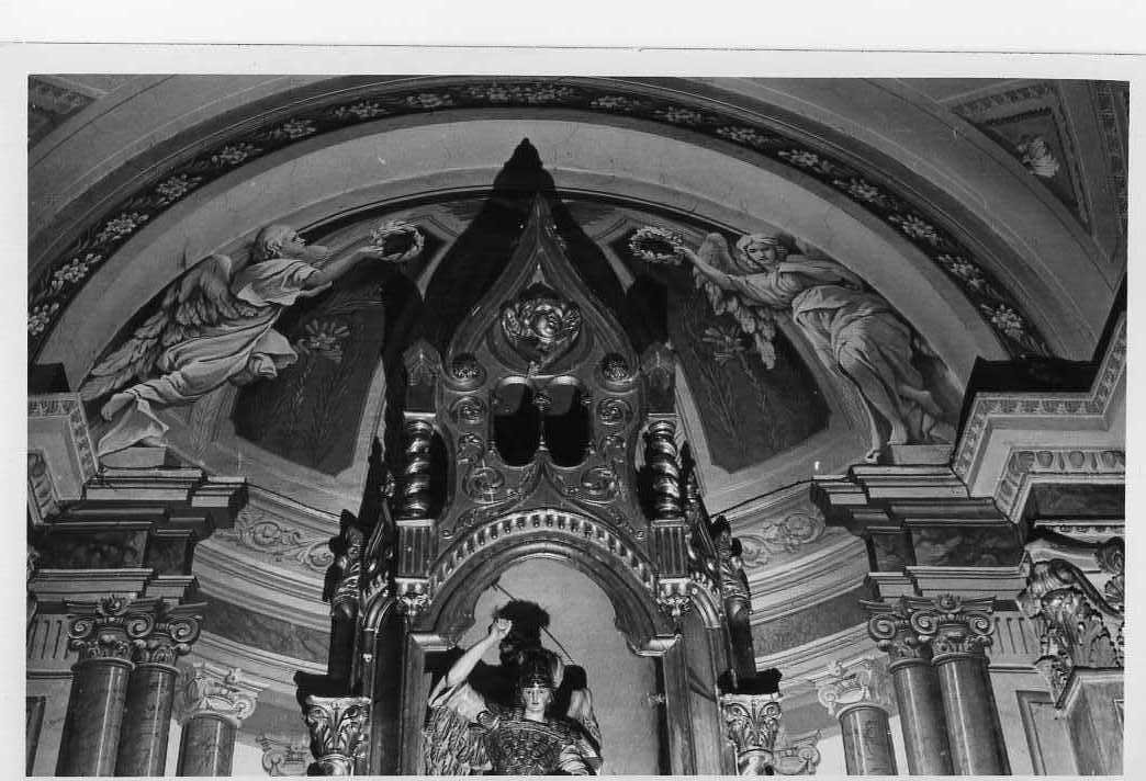Il cappellone è affrescato con un colonnato corinzio sul quale sono raffigurati due angeli che incoronano la Madonna contenuta nella teca