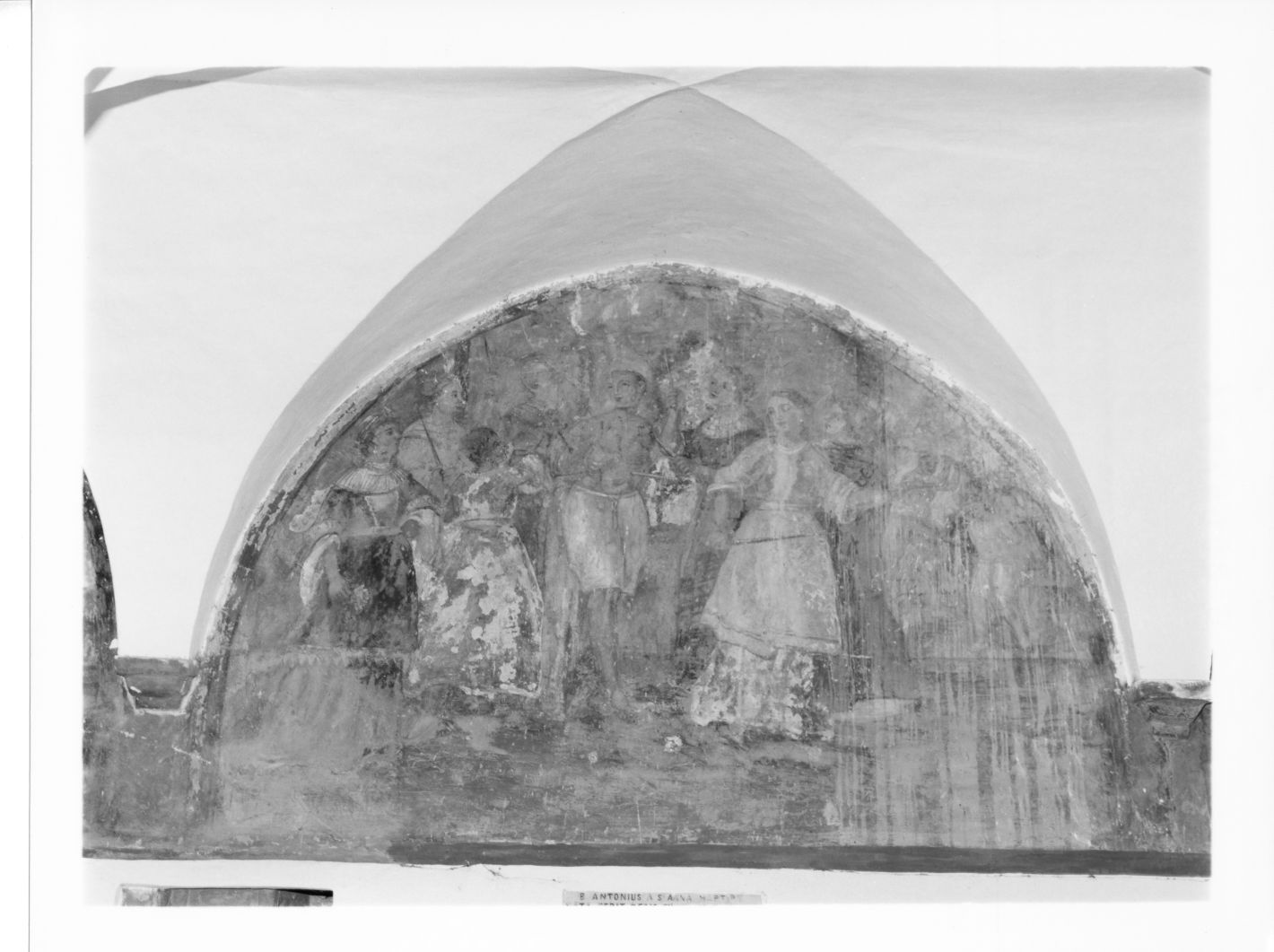 L'affresco raffigura Beato Antonio de Sant'Anna torturato con spade e legato ad un tronco