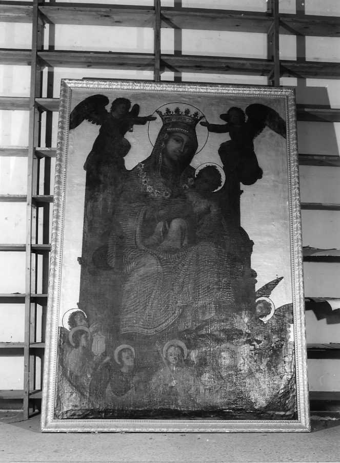 Su fondo d'oro la Madonna di Montevergine è seduta in trono col Bambino tra due angeli in alto e altri in basso intorno al trono. Il dipinto ha una cornice