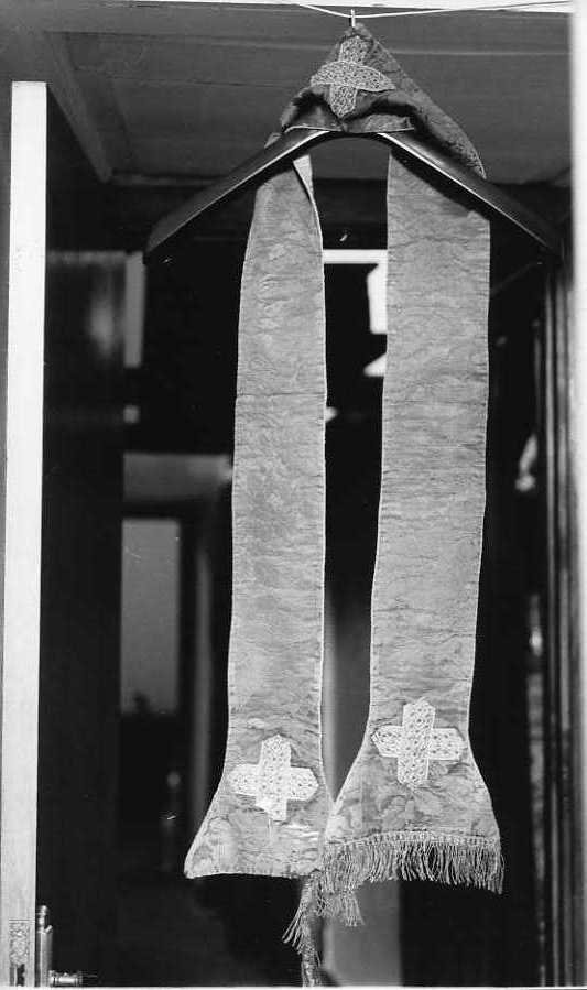 Stola ricamata con disegni floreali in broccato, frange e bordi dorati, tutto su fondo avorio