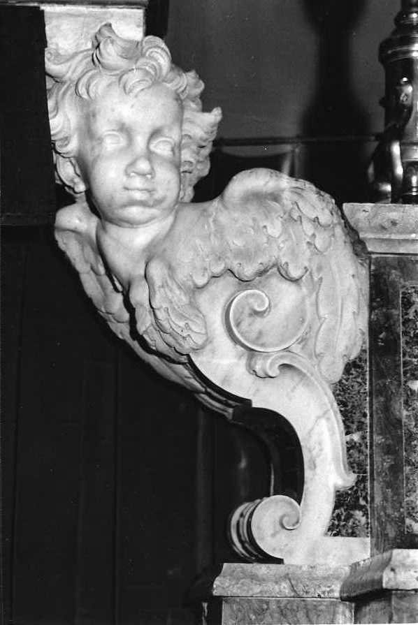 Ai lati dell'altare coppia di cherubini in marmo bianco
