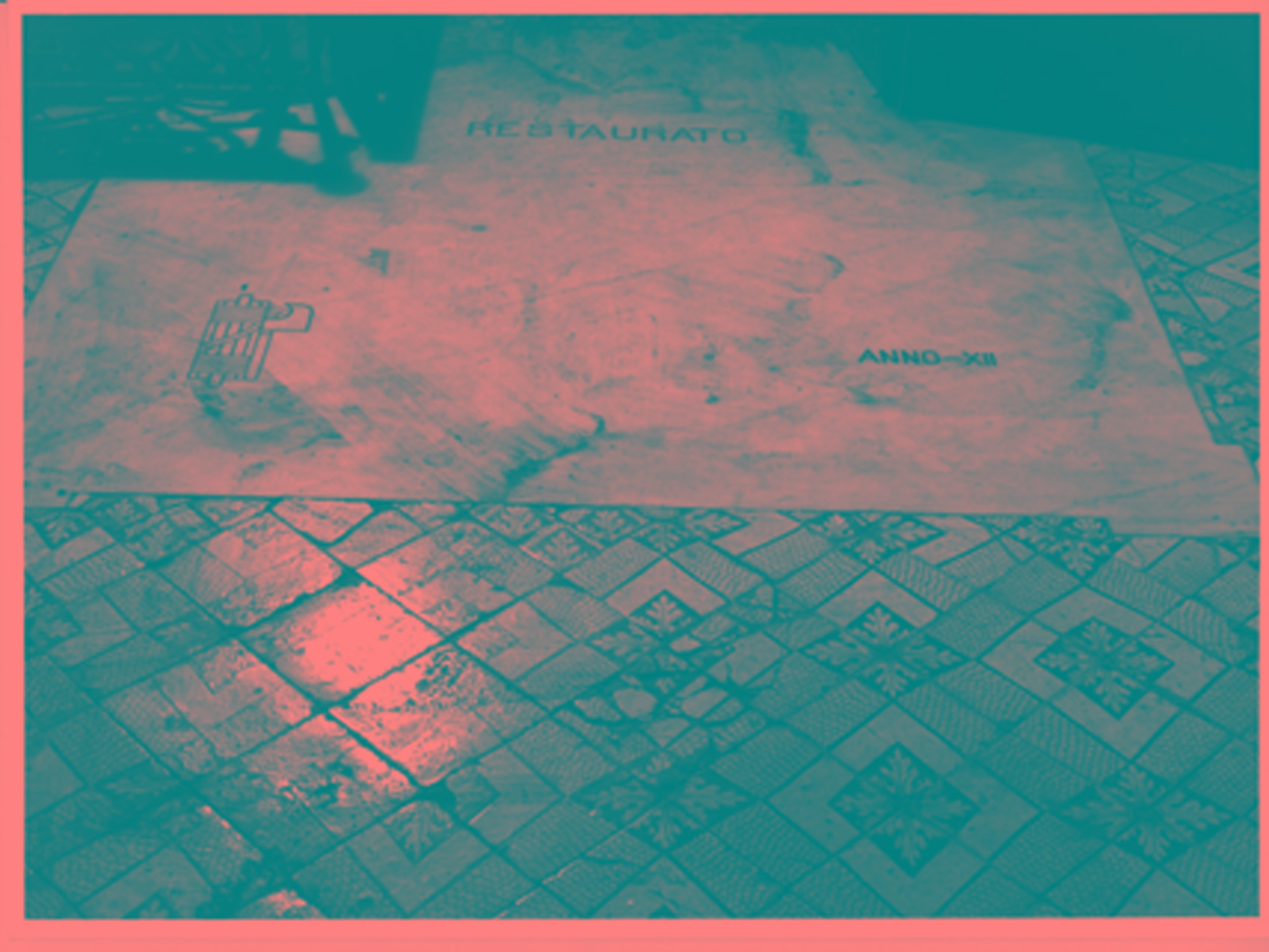 - ISCRIZIONI Sul pavimento - RESTAURATO/ ANNO XII - lettere capitali -