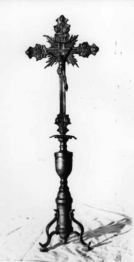 Croce con base tornita con tre piedini potenziata ai terminali con motivi floreali