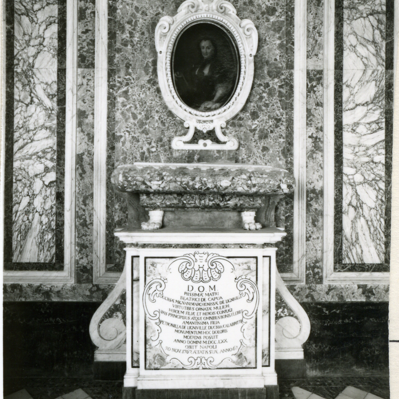 - NOTIZIE STORICO CRITICHE Sepolcro di Beatrice di capua, duchessa di Mignano e marchesa De Ligniville, fatto erigere dalla figlia Petronilla De Ligniville, duchessa di Calabritto, tre anni dopo la sua morte, avvenuta il 30 nov. 1767