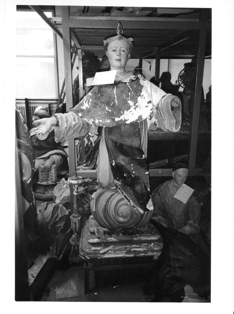 - NOTIZIE STORICO CRITICHE La chiesa del Purgatorio è stata edificata nei primi anni del XIX secolo, ed è anche detta di S. Antonio, perchè come risulta dal "Cronista Conzana del 1689-1691" sorgeva un'antica chiesa. La scultura di modesta fattura si inserisce nella produzione artigianale locale di soggetti sacri, secondo i temi dell'agiografia tradizionale, conservando una certa rigidità espressiva e di posa poco naturale. Databile alla metà del XIX secolo, è probabilmente una delle opere facenti parte dell'arredo originario della chiesa mentre altre confluirono nella stessa da altri edifici sacri dopo il terremoto del 1930