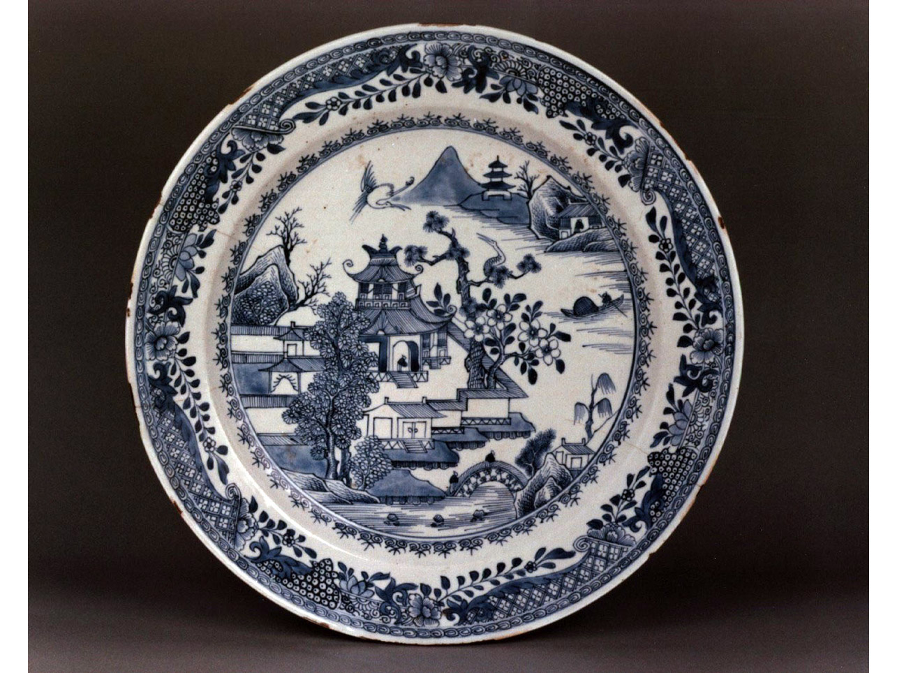 Piatto in porcellana dipinta del tipo bianco e blu