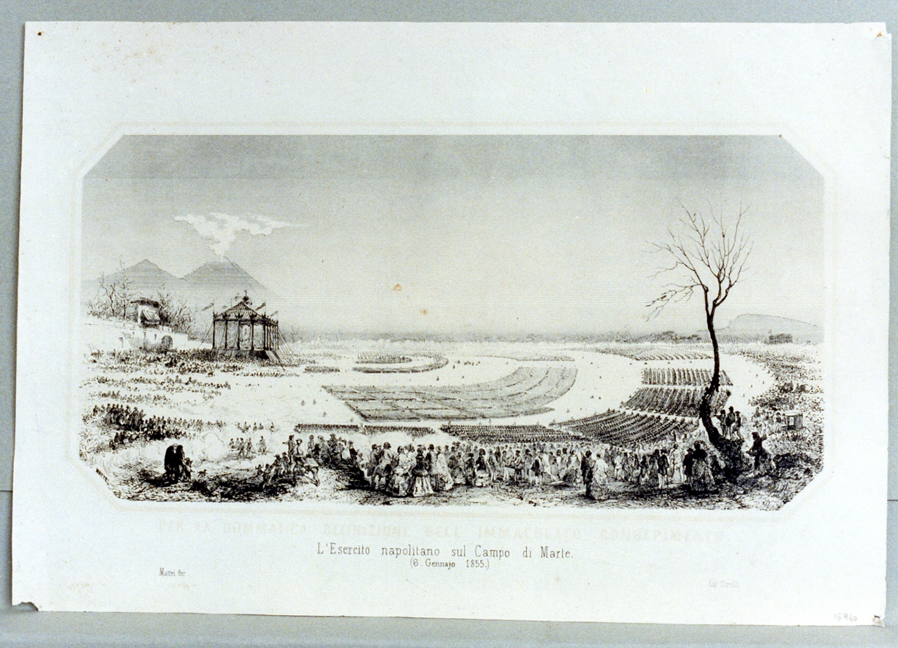 - ISCRIZIONI in basso a sinistra - PER LA DOMMATICA DEFINIZIONE DELL'IMMACOLATO CONCEPIMENTO L'ESERCITO NAPOLITANO SUL CAMPO DI MARTE -
