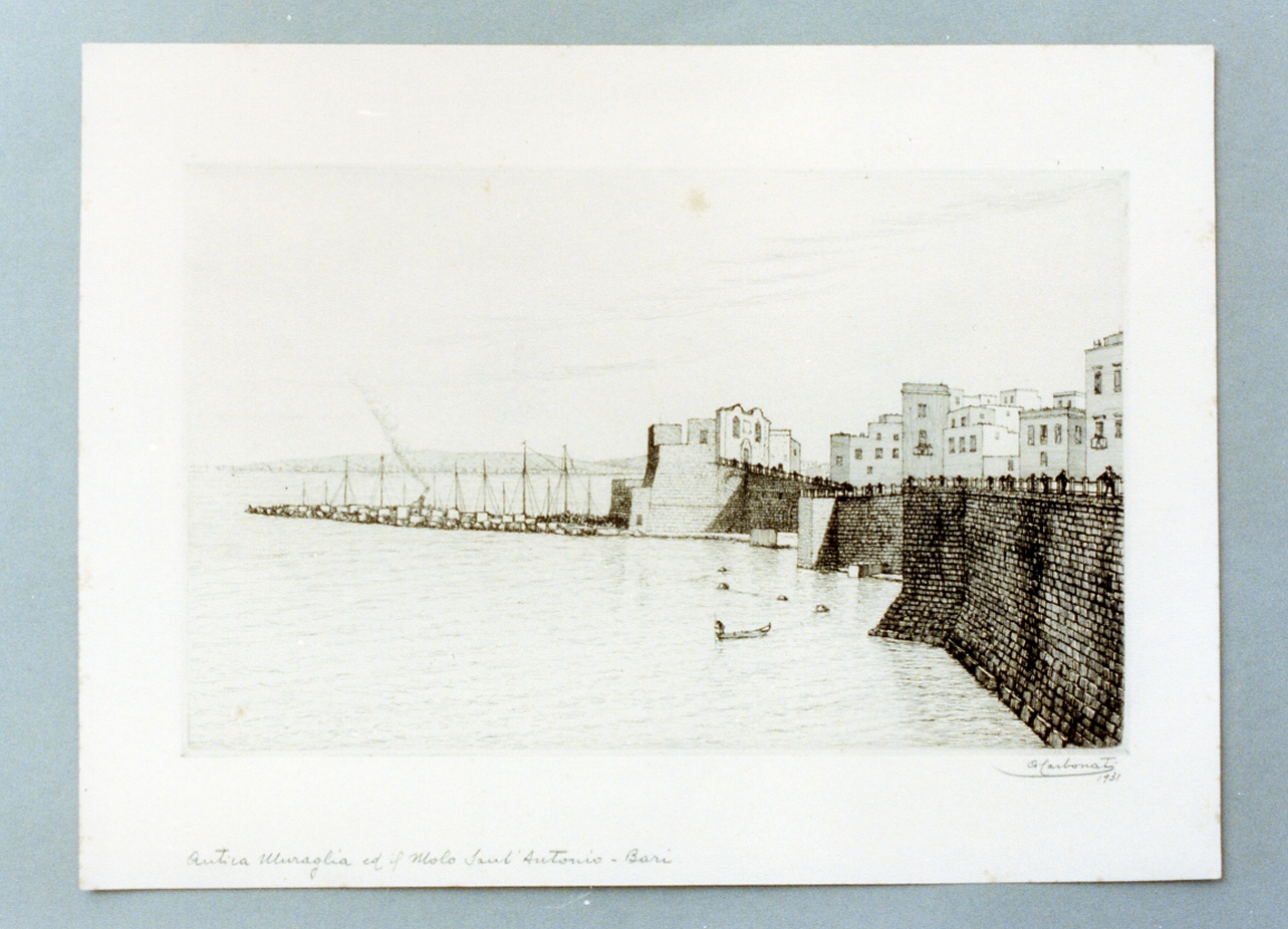 - ISCRIZIONI in basso a sinistra - ANTICA MURAGLIA ED IL MOLO SANT'ANTONIO-BARI - a matita -