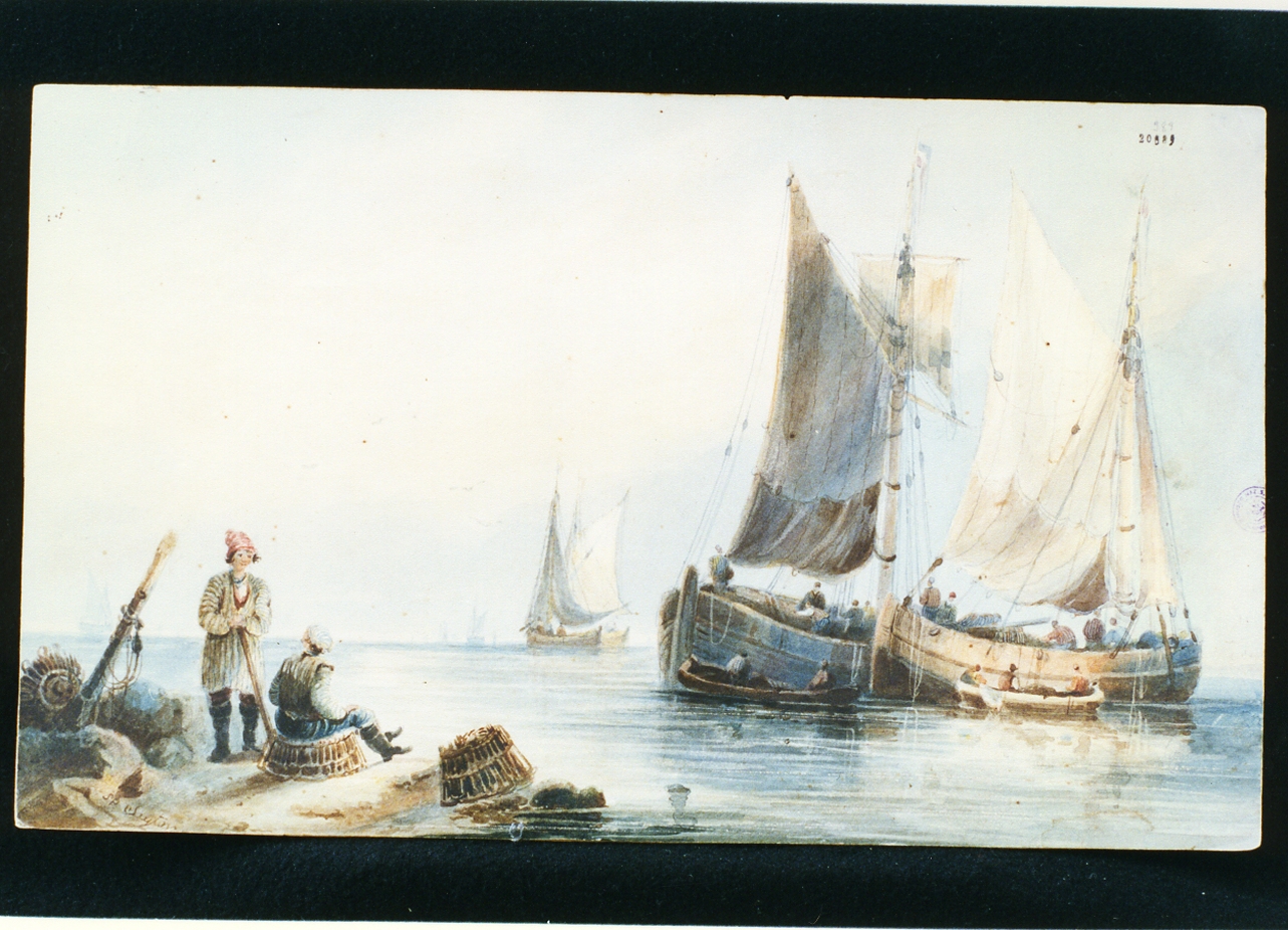 marina con pescatori e barche