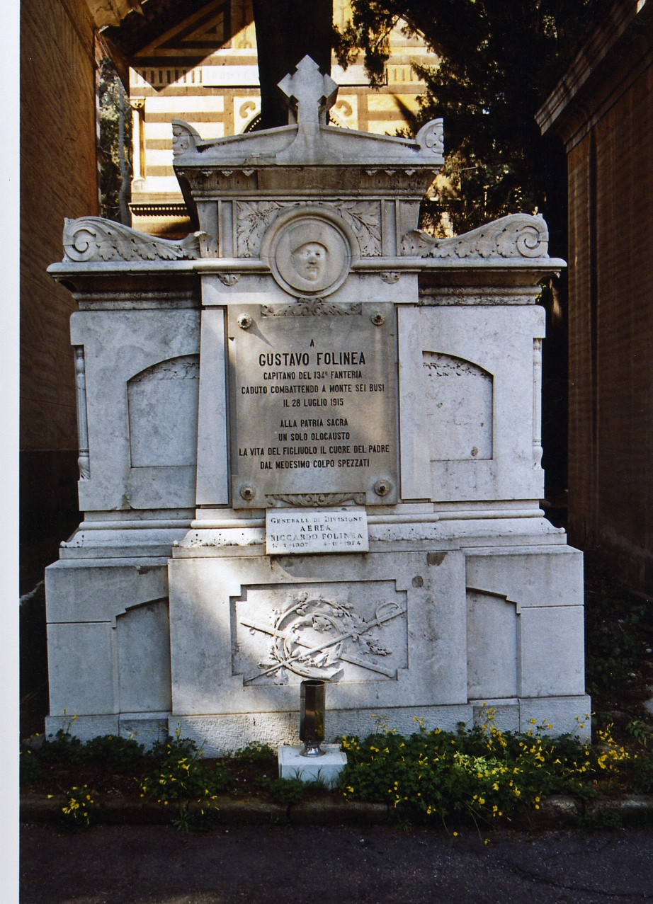 - ISCRIZIONI sul tondo - A/ GUSTAVO FOLINEA/ CAPITANO DEL 134 FANTERIA/ CADUTO COMBATTENDO A MONTE SEI BUSI/ IL 28 LUGLIO 1915/ ALLA PATRIA SACRA/ UN SOLO OLOCAUSTO/ LA VITA DEL FIGLIUOLO IL CUORE DEL PADRE/ DAL MEDESIMO COLPO SPEZZATI -