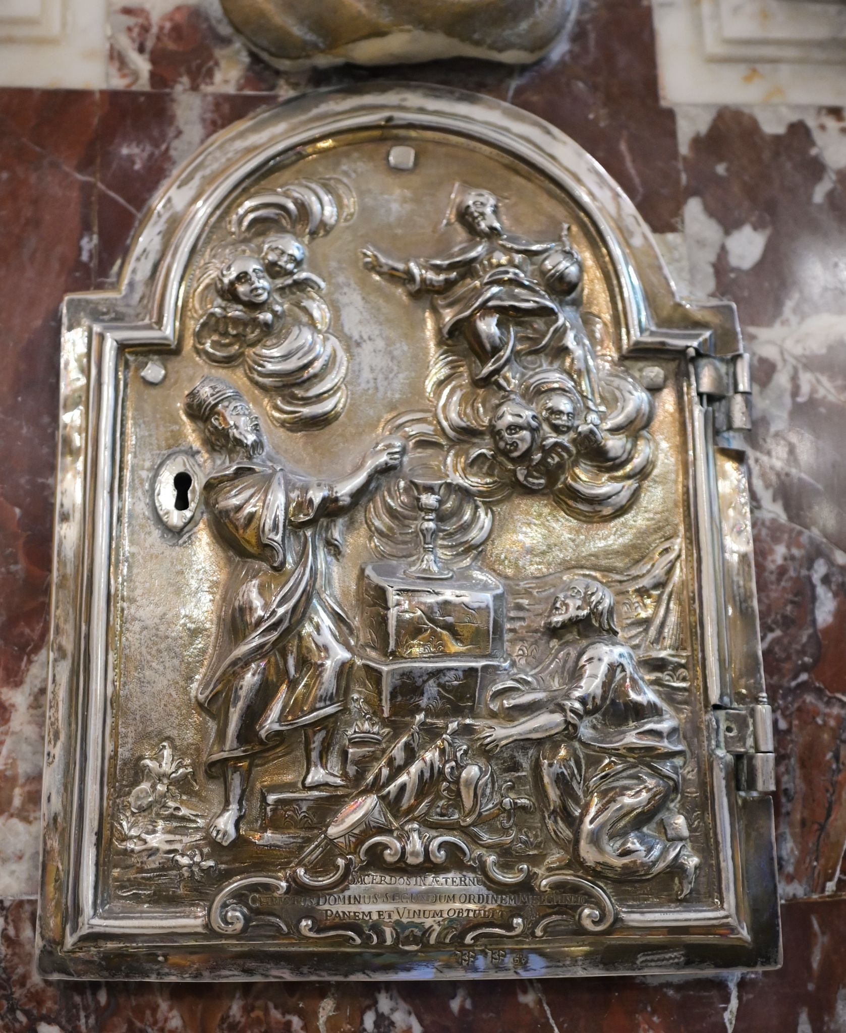 - ISCRIZIONI SACERDOS IN AETERNO/ CHRISTUS DOMINUS SECUNDUM ORDINEM MELCHISEDEC/ PANEM ET VINUM OBTULIT - lettere capitali - latino