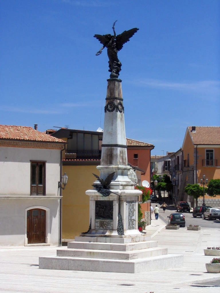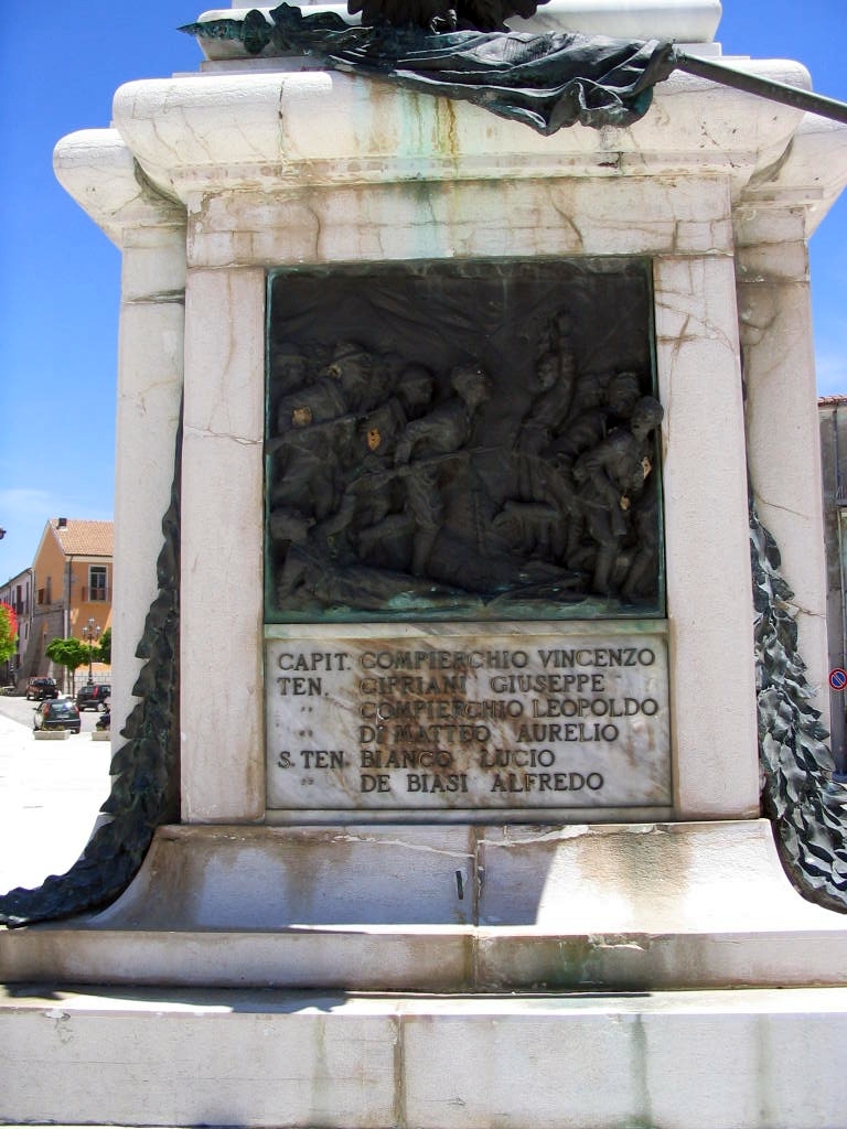 Il monumento ai caduti del comune di Guardia Lombardi è costituito da un alto obelisco su un basamento dove sono riportati i nomi dei caduti e arricchito con rilievo raffigurante una scena di guerra che denota sia la diretta partecipazione dello scultore - combattente ai feroci assalti all'arma bianca - e sia il monito per i posteri. Sulla cornice del rilievo un'aquila in bronzo che con gli artigli regge la bandiera italiana. L'obelisco è sormontato dalla statua bronzea della Vittoria alata che, con i capelli sciolti al vento, nella mano destra regge una corona d'alloro e nella sinistra la palma di ulivo, che invita alla pace e alla concordia