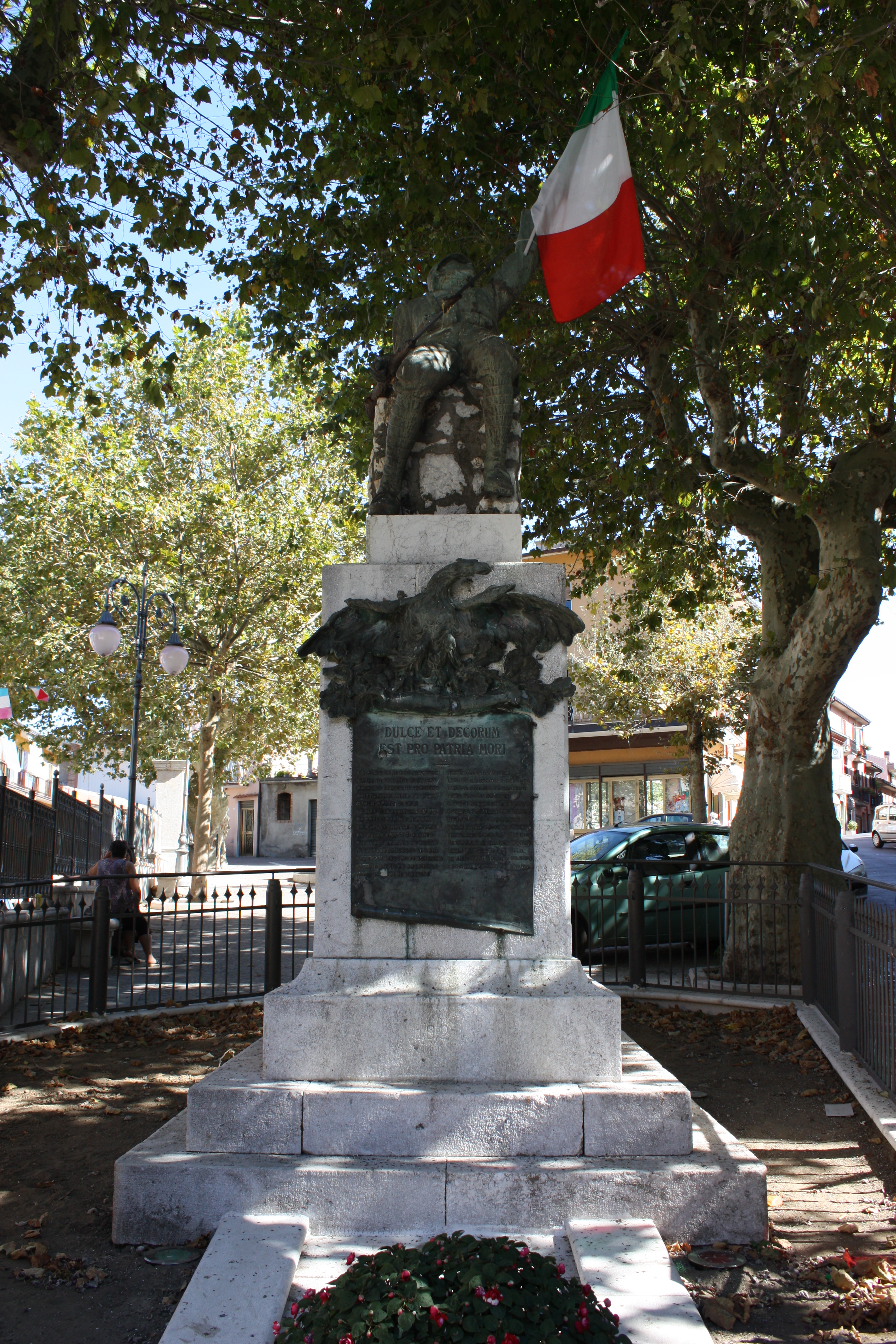 - ISCRIZIONI basamento/ lato anteriore - DULCET ET DECORUM/ EST PRO PATRIA MORI/ CATALDO CARLO DI PASQUALE/ CATALDO GENUINO DI AUSILIO/ CATALDO ENRICO DI DOMENICO/ CRISTOFARO EMILIO FU GIUSEP/ OTOLO AMATO DI LUIGI/ DE NAPOLI SALVATORE FU GIOV/ MAMMUCCI MARINO DI PIETRO/ DE NAPOLI ENRICO FU MICHEL.LO/ REPPUCCI AMATO DI ANGELO/ REPPUCCI EUGENIO FU GIOVAN/ PASQUALE FRANCESCO DI D. ANT/ REPUCCI GIACOMO DI DOMENICO/ RIZZO EMIODIO FU ARCANGELO/ MERIANO LUIGI DI GIOVANNI/ RIZZO OLIMPIO FU LUIGI/ LUONGO ERNESTO FU GENEROS/ CIAMPA CARMINE DI GAETANO/ PESA VITO FU ANTONIO/ LUONGO PASQUALE FU RAFFAEL/ REPPUCCI MICHELE FU SALVAT/ PICARDI LUIGI DI RAFFAELE/ DELLO RUSSO RAFFAELE FU CAB.E/ TENTINDO GIUSEPPE FU TOMMAS/ MATARAZZO ANTONIO DI DOMEN/ MEOLI MICHELE DI FELICIANO/ DE ANGELIS AMADIO FU FILIPPO/ ZACCHEO ERNESTO FU AMADIO// - Orazio - corsivo -