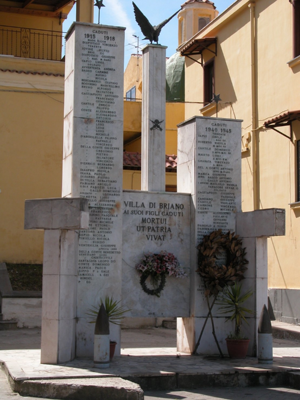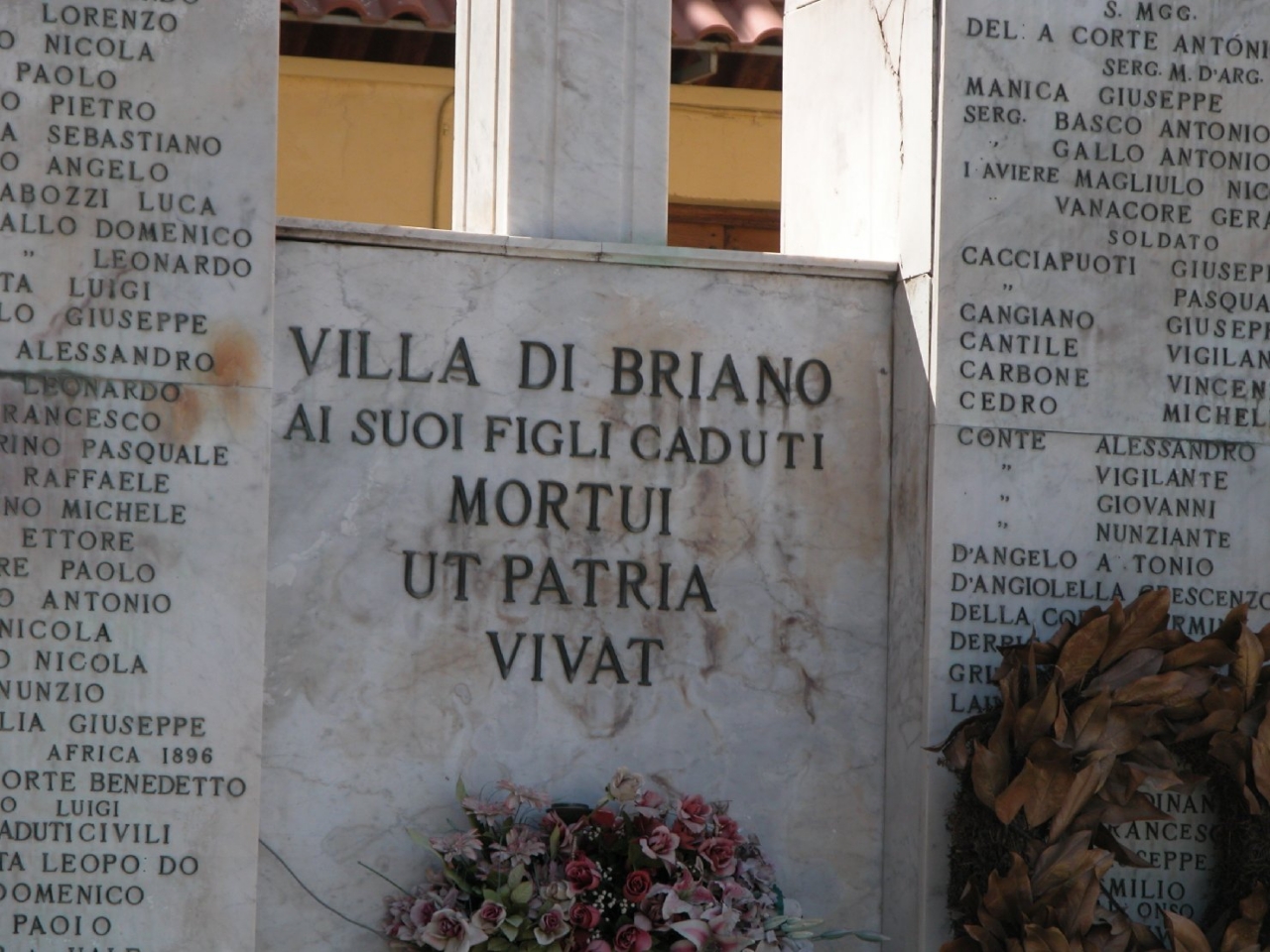 - ISCRIZIONI lato anteriore/ centrale - VILLA DI BRIANO/ AI SUOI FIGLI CADUTI/ MORTUI/ UT PATRIA/ VIVAT/ Amm.ne Comunale Novembre 2009 Il sindaco Dionigi Magliulo// - lettere capitali -