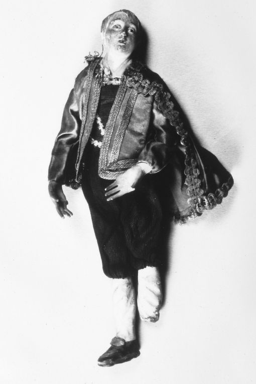 occhi in vetro; tela bianca; bordino dorato; seta bordeaux