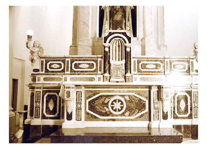 - ISCRIZIONI sulla base dell'angolo destro - GIROLAMO TIANI/ DI LUCERA IN RODI/ DONAVA ALLA V. SS./ IN MARZO 1873 - lettere capitali - a pennello/ a solchi -