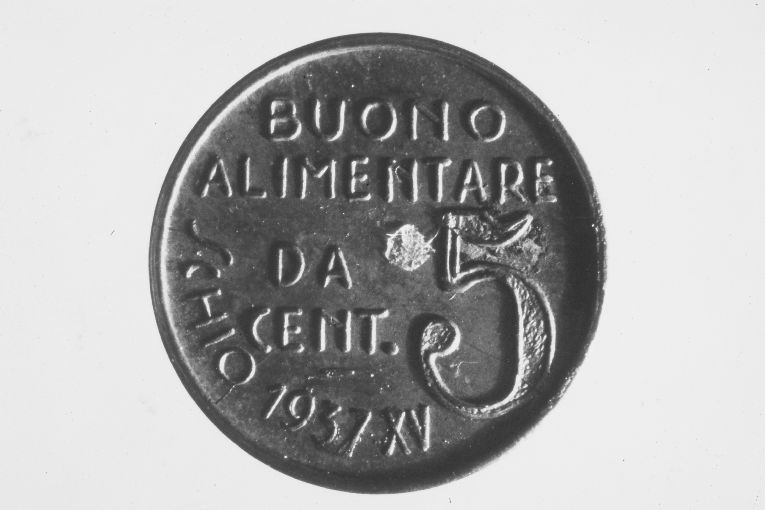 - ISCRIZIONI recto e verso - S.VINCENZO DE PAOLI (recto)BUONO/ ALIMENTARE/ DA / CENT./ 5/ SCHIO 1937 X V (verso) - lettere capitali -