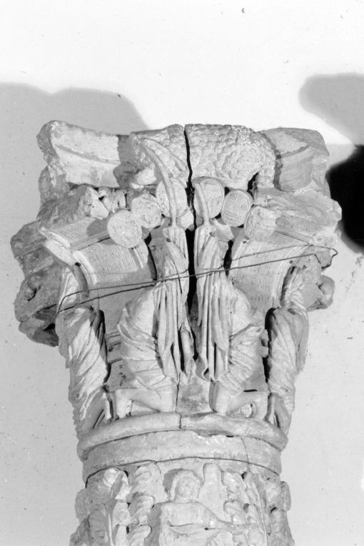 - ISCRIZIONI sulla superficie di una foglia - BEATI QUI / LAVANT STO/LAS SUAS / IN SANGUINE / AGNI, UT / SIT POTESTAS / EORUM ET / LIGNO VITE, ET / P(...) - lettere capitali - a solchi -