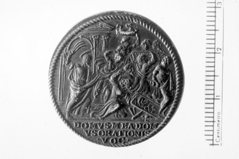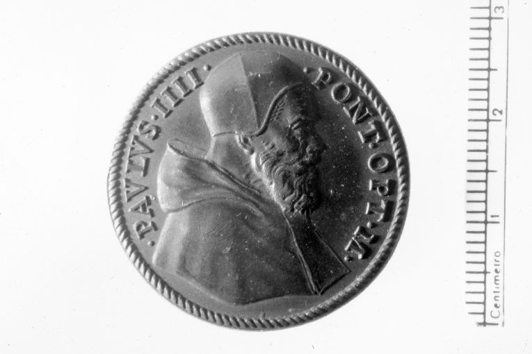 - ISCRIZIONI recto/verso - PAVLVS IIII PONT. OPT. M. (recto)DOMVS MEA DOM/VS ORATIONIS / VOC. (verso ) - lettere capitali - a rilievo -