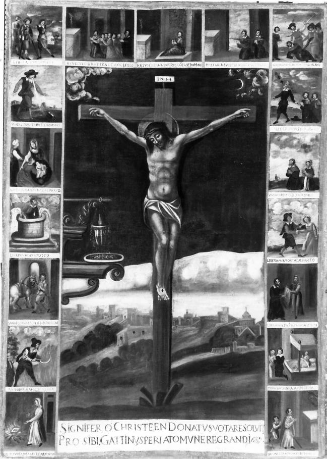 Personaggi: Cristo crocifisso. Paesaggi. Vedute: Matera. Oggetti: lampada. Fenomeni divini: episodi miracolosi
