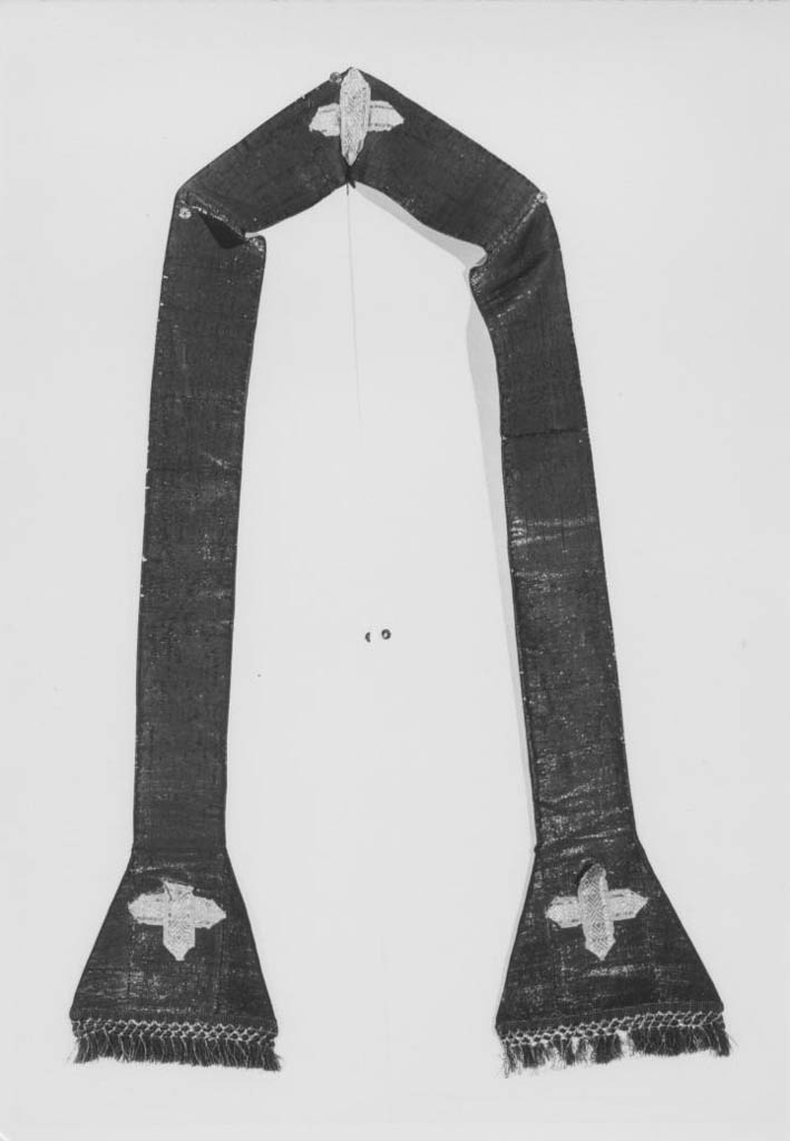 - NOTIZIE STORICO CRITICHE Lo stemma collocato sulla pianeta ricorda che il parato in esame fu commissionato e offerto alla cattedrale venosina da nobili da identificare. Il gros laminato impiegato per la sua realizzazione è un tipo di tessuto abbastanza presente nel patrimonio tessile delle nostre chiese, poiché, pur non essendo particolarmente pregiato nè di complessa esecuzione, ben si adatta all'uso liturgico per la luminosità che deriva dalla presenza di trame supplementari in oro e argento lamellare