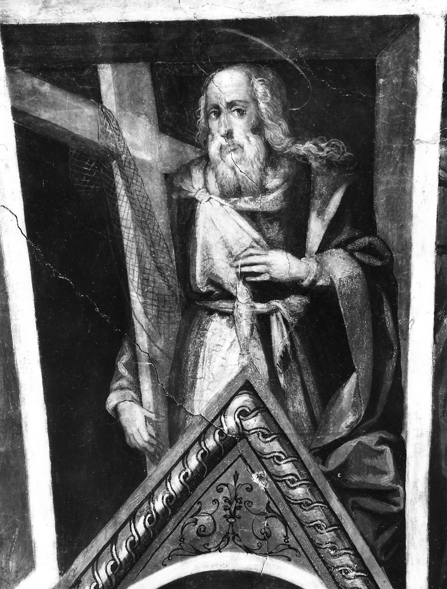 Personaggi: sant'Andrea Apostolo. Attributi: (Sant'Andrea) croce; rete; pesce
