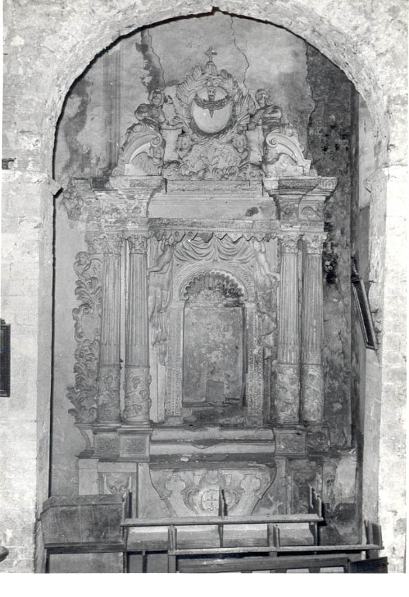 - NOTIZIE STORICO CRITICHE Similissimo al primo altare della navata sinistra, è eseguito dal medesimo entourage nella seconda metà del sec. XVIII; d'altra parte, come osservato da Petrizzi, è proprio nel sec. XVIII che vengono coperte le nicchie, presenti nell'antica chiesa di S. Maria del Piano, e vengono realizzati gli altari in stucco (Petrizzi, 1996, p. 60). E' chiaramente espressione dell'arte tardo barocca, interpretata a livello provinciale, in maniera più sobria e meno sfarzosa