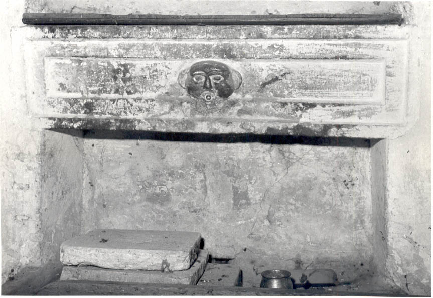 - NOTIZIE STORICO CRITICHE Quest'opera è un lavabo, adottato dal sacerdote per purificarsi prima delle funzioni liturgiche; potrebbe essere una testimonianza dell'antica chiesa benedettina, già attestata a metà del sec. XII (Petrizzi, 1996, p. 58). De Bonis, a proposito di quest'opera, parla di un'acquasantiera del sec. XII, riportando anche una foto (De Bonis, 1996, p. 77). Esistono, a mio avviso, diverse questioni su cui mi sembra giusto soffermarmi: in primis, la tipologia dell'opera rende diffocoltosa una datazione certa. Se si trattasse effettivemente di un'opera del sec. XII, dovremmo pensare che essa sia stata collocata in questa posizione, nella seconda metà del Settecento, quando venne modificata la zona absidale della chiesa creando, tra l'altro, l'attuale sagrestia. Devo, però, notare come il mascherone ricordi quelli che affiancano il portone del palazzo Nardone, sempre a Calvello, opera della seconda metà del Settecento (1753), il che porta ad ipotizzare anche per quest'opera una medesima datazione
