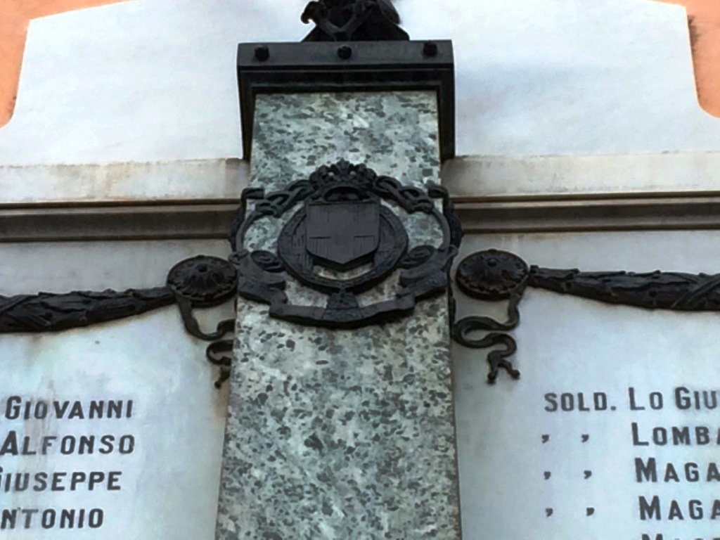 - ISCRIZIONI corpo centrale - TEN. DE ROSA GIOVANNI, TEN. LOMBARDI ALFONSO, TEN. PECCI GIUSEPPE, TEN. CAPP. PIERRI ANTONIO, ASPIR. NACCARATI VINCENZO, SERG. AULICINO FRANCESCO, CAP. MAG. DE NICTOLIS MICHELE, CAP. MAG. FALVELLA ANTONIO, CAP. MAG. FORTUNATO RAFFAELE, SOLD. AMODIO FRANCESCO, SOLD. CANCIELLO VINCENZO, SOLD. CARRANO PASQUALE, SOLD. CERZA ROCCO, SOLD. CIORCIARI DOMENICO, SOLD. CORNETTA ROSARIO, SOLD. DE MARCA RAFFAELE, SOLD. DE MARCA RAFFAELE, SOLD. DI NOVI SALVATORE, SOLD. FARINA LUIGI, SOLD. FERRARA GENNARO, SOLD. GAGLIANO ANTONIO, SOLD. GARGIULO SALVATOE, SOLD. L’AFFLITTO CARMINE, SOLD. LA SALVIA VITO, SOLD. LA SCALEIA VINCENZO, SOLD. LA TERZA ANTONIO, SOLD. LAVIERI ANTONIO, SOLD. LAVIERI GIUSEPPE, SOLD. LEOPALDI ANTONIO, SOLD. LO GIURATO ANTONIO, SOLD. LOMBARDI NICOLA, SOLD. MAGALDI ANTONIO, SOLD. MAGALDI MICHELE, SOLD. MAGGIO ANTONIO, SOLD. MERCADANTE GIUSEPPE, SOLD. MILANO ANTONIO, SOLD. MACCARATI LUIGI, SOLD. NOCELLA VINCENZO, SOLD. NOTAROBERTO GIUSEPPE , SOLD. NOTAROBERTO PASQUALE, SOLD. ORNANDO MICHELE , SOLD. PASSARELLA DOMENICO, SOLD. PERRUOLO ANTONIO, SOLD. PETRONE FRANCESCO, SOLD. PONZIO FRANCESCO, SOLD. QUAGLIARELLO MICHELE, SOLD. RACIOPPI ANTONIO, SOLD. RAGONE CARMINE, SOLD. RAMUNNO ANTONIO, SOLD. SACCO ANGELO, SOLD. SAMA’ ANDREA, SOLD. SQUIDIERI ANTONIO, SOLD. TAVOLARO GIUSEPPE, SOLD. TAVOLARO MICHELE, SOLD. TORTORIELLO FRANCESCO, SOLD. VILLANO VITO, SOLD. VOTTA FRANCESCO - maiuscolo - a incisione -