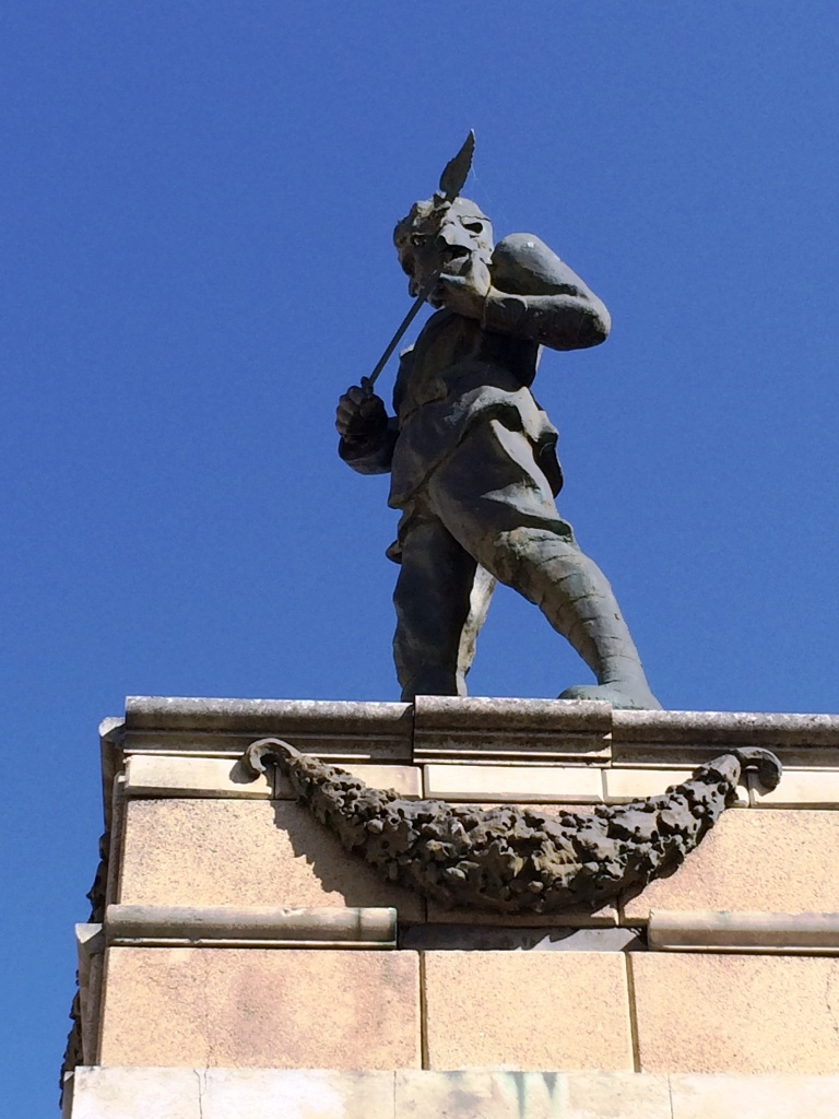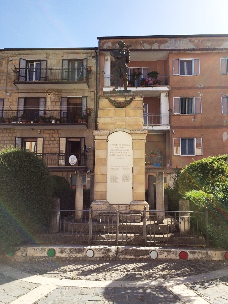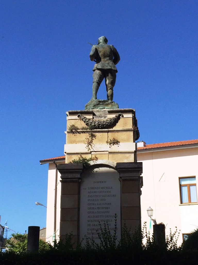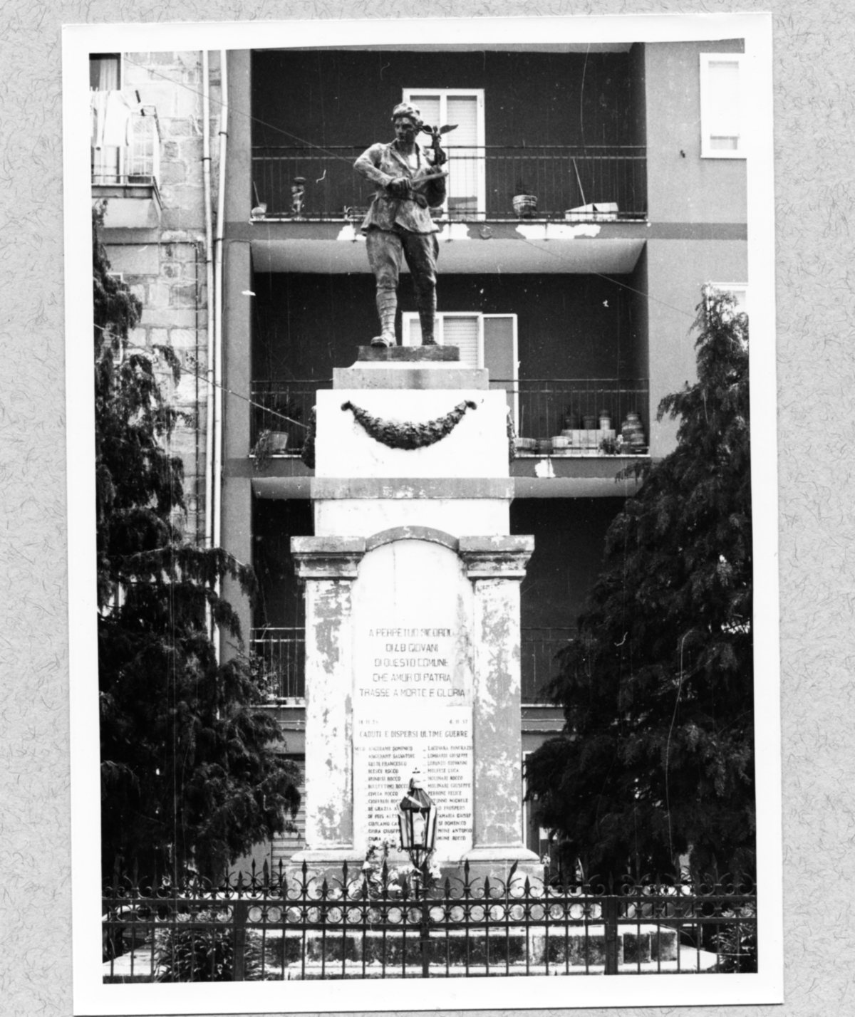 - NOTIZIE STORICO CRITICHE Nel 1925 il comune di Albano di Lucania fece un appello ai concittadini residenti all'estero, chiedendo loro una cospicua donazione di denaro, affinchè lo scultore Michele Armento potesse terminare l'opera monumentale già iniziata. Il basamento attuale non è quello del 1926. Bibliografia: La Basilicata nel mondo: rivista mensile illustrata, Tip. Giannini, Napoli 1927