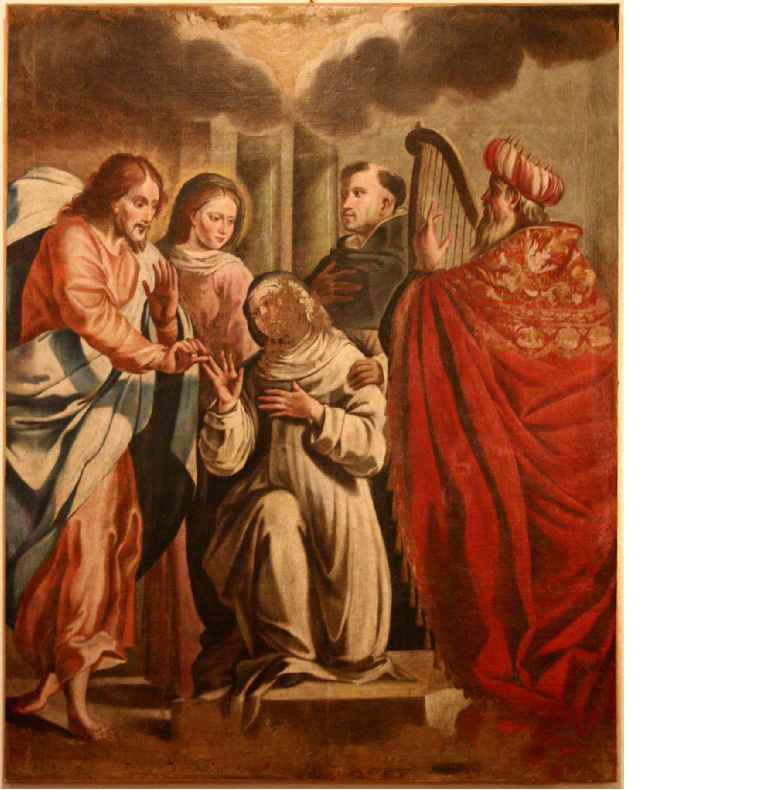 Il dipinto raffigura lo sposalizio mistico di una monacanda, che riceve l'anello da Cristo, in secondo piano la Vergine e S. Domenico; sulla destra, vestito da un ampio manto rosso, Re David con la cetra