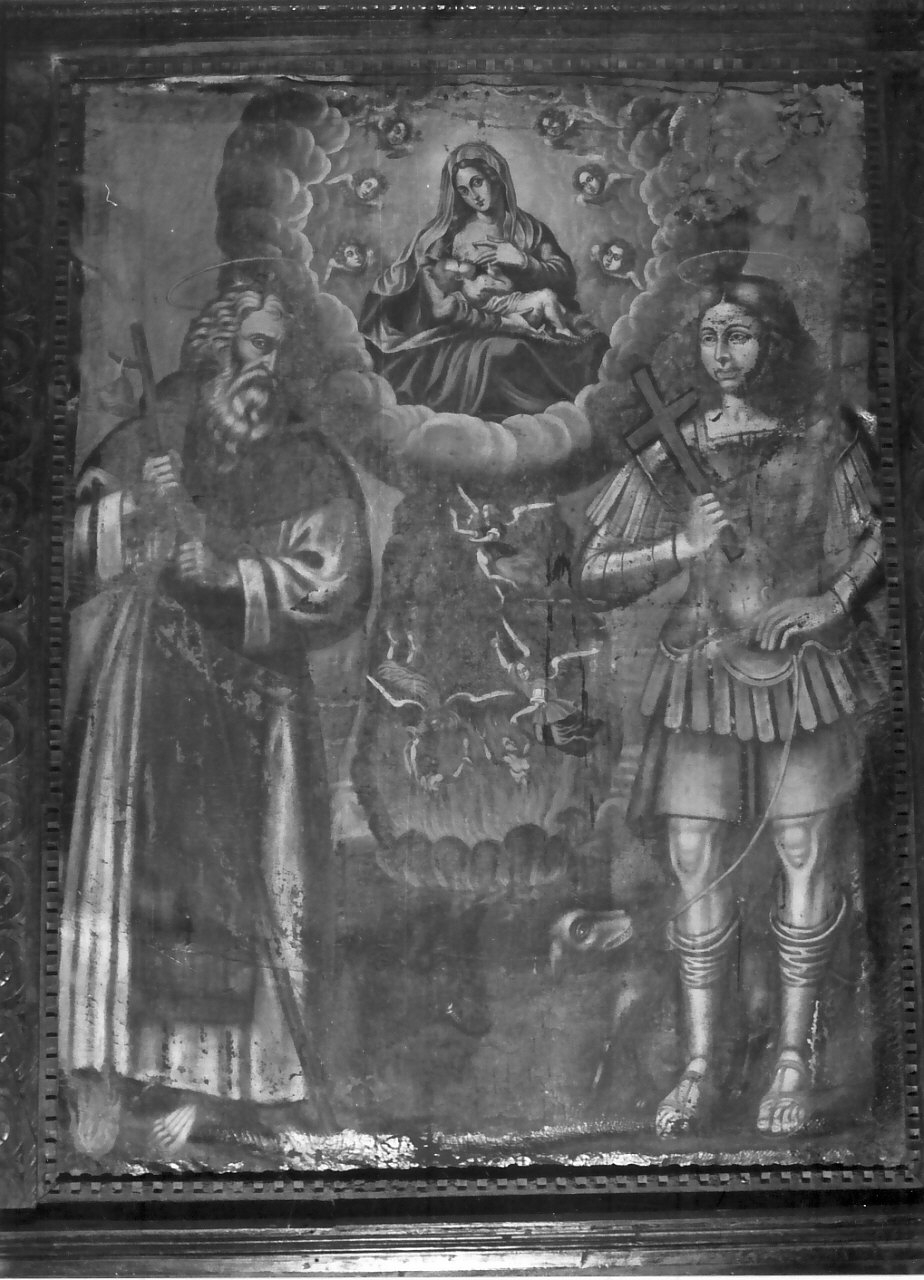 Il dipinto presenta una varietà di soggetti: i Santi Antonio e Vito con i loro attributi iconografici, al centro le anime purganti che scendono al cielo verso la Madonna che allatta il Bambino; intorno uno stuolo di angeli