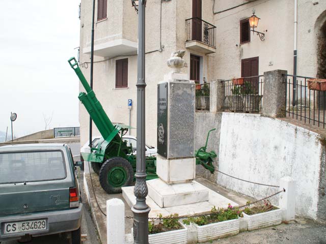 monumento con piedistallo quadrangolare sul quale sono fissate lastre in granito su tre delle quattro facce: quella centrale reca un'iscrizione dedicatoria; quella laterale destra i nomi di quattordici caduti della prima guerra mondiale, quella sinistra di tredici caduti della seconda; il tutto è sormontato da una lanterna