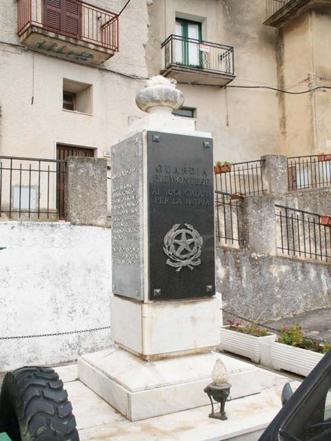 - ISCRIZIONI piedistallo, prospetto frontale - GUARDIA PIEMONTESE / AI SUOI CADUTI / PER LA PATRIA - maiuscolo - a caratteri applicati - italiano