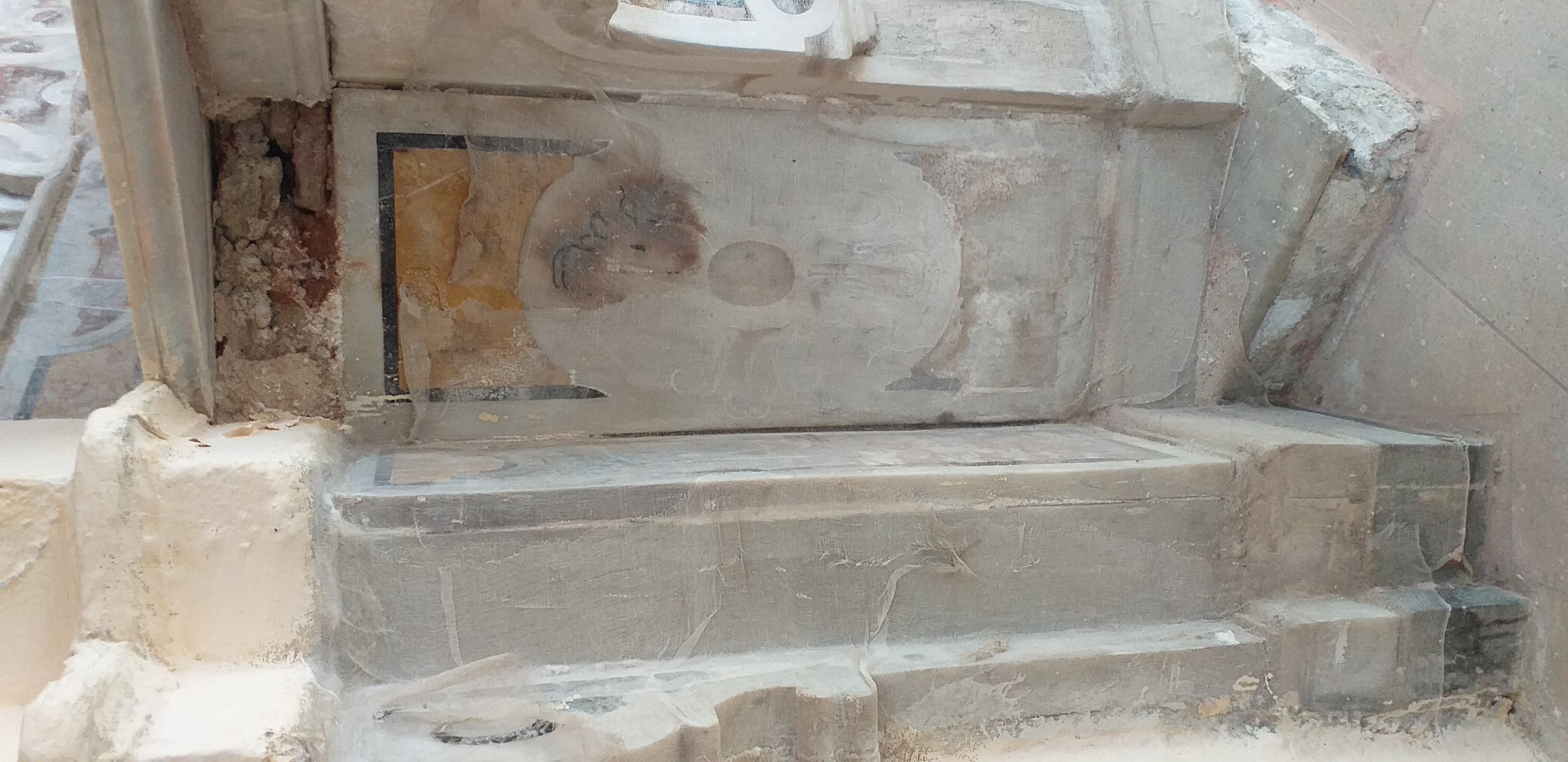 - NOTIZIE STORICO CRITICHE Secondo le fonti lo scultore napoletano Marino Palmieri, (doc. dal 1754 al 1777 o 1782) il figlio Domenico anche egli scultore (doc. dal 1773 al 1780) e la sua bottega sono ampiamente documentati nella provincia di Cosenza impegnati nella realizzazione di vari altari nelle più importanti chiese dal 1763 al 1782 ca. Secondo la ricostruzione dell'attività svolta, Marino Palmieri e la sua bottega tra il 1776 e il 1779 furono impegnati nella realizzazione dell'altare e del relativo fastigio della cappella della Madonna del Pilerio nella Cattedrale cosentina. Nel 1777 fu impegnato insieme alla sua equipe nell' esecuzione del bellissimo altare della Cappella dell'Immacolata della medesima Chiesa di San Francesco d'Assisi in Cosenza. Come reca l'iscrizione votiva, anche l'altare dell'Immacolata fu commissionato per volere di Fra Salvatore da Taverna. Secondo un'attenta analisi stilistica supportata da fonti storiche che rivelano l'attività dello scultore Marino Palmieri, del figlio Domenico, l'altare dell'Addolorata preso in esame, commissionato nel 1778 per volere di Fra Salvatore da Taverna è attribuibile alla sua bottega su disegno del maestro stesso